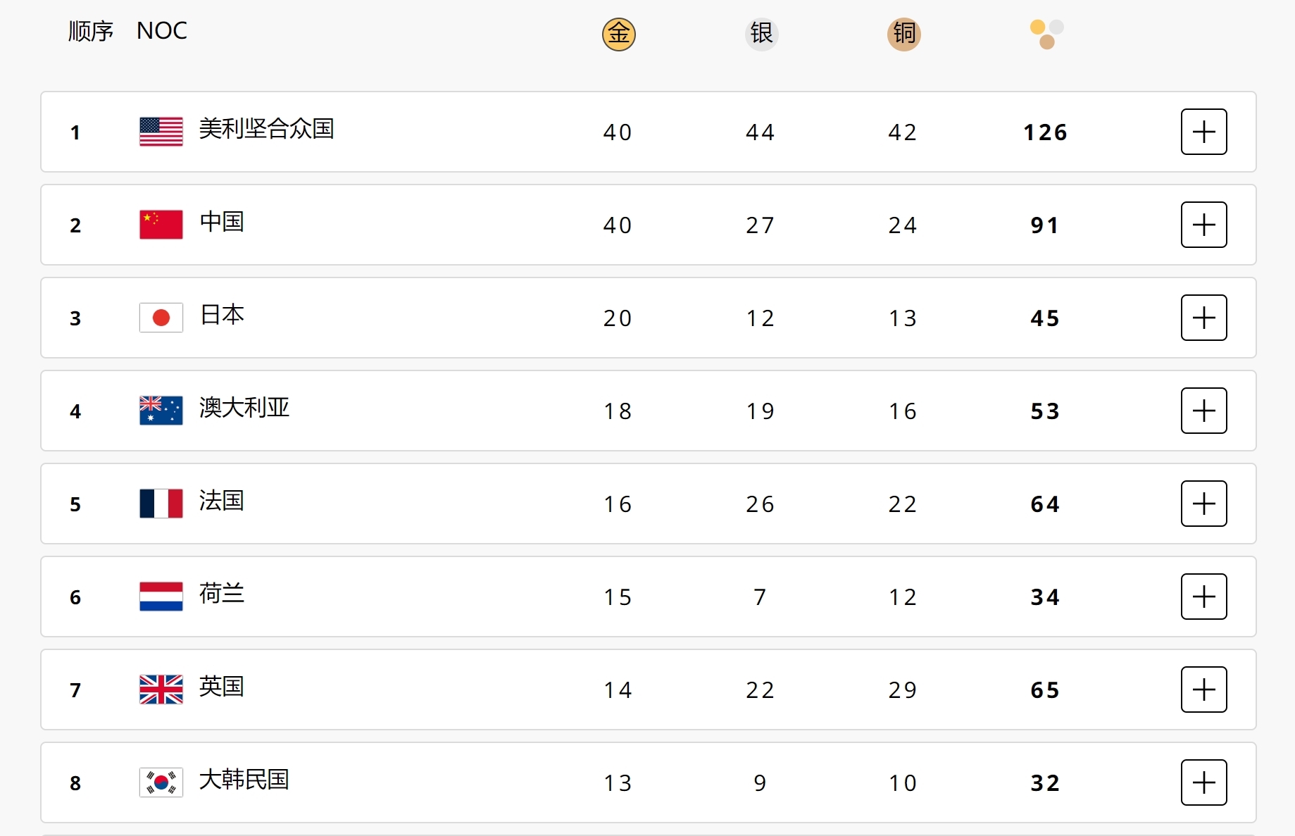 部分过去有不错表现的项目,本届奥运会表现不尽如人意,比如中国击剑队,本届奥运会未能登上领奖台,2000年以来历届奥运会均有奖牌入账的成绩就此终结。横向对比,更让人扎心。本届奥运会,日本队摘得2金1银2铜领跑击剑项目奖牌榜,韩国队收获2金1银,实现男佩团体三连冠,中国香港队则两夺个人金牌,打破了近些年亚洲击剑中日韩三队鼎立的局面。