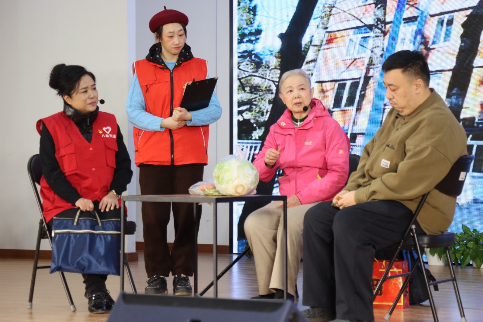 联欢会在八角街道文化志愿者组成的玲悦舞蹈团带来的原创开场舞《在希望的田野上》中启幕,舞者身着艳丽服饰,轻盈灵动的舞步兼具春的生机与邻里的热忱,迅速点燃现场氛围。同样由社区书记、网格员和八角齐翔剧社创作演出的情景剧《老楼新生》,生动还原辖区老旧小区改造历程,勾起居民共同回忆,赢得阵阵共鸣;石景山区文化馆曲艺队李然、陈铮献上的国潮非遗相声《开心一刻》,融合传统技艺与非遗元素,幽默台词让现场笑声不断。
