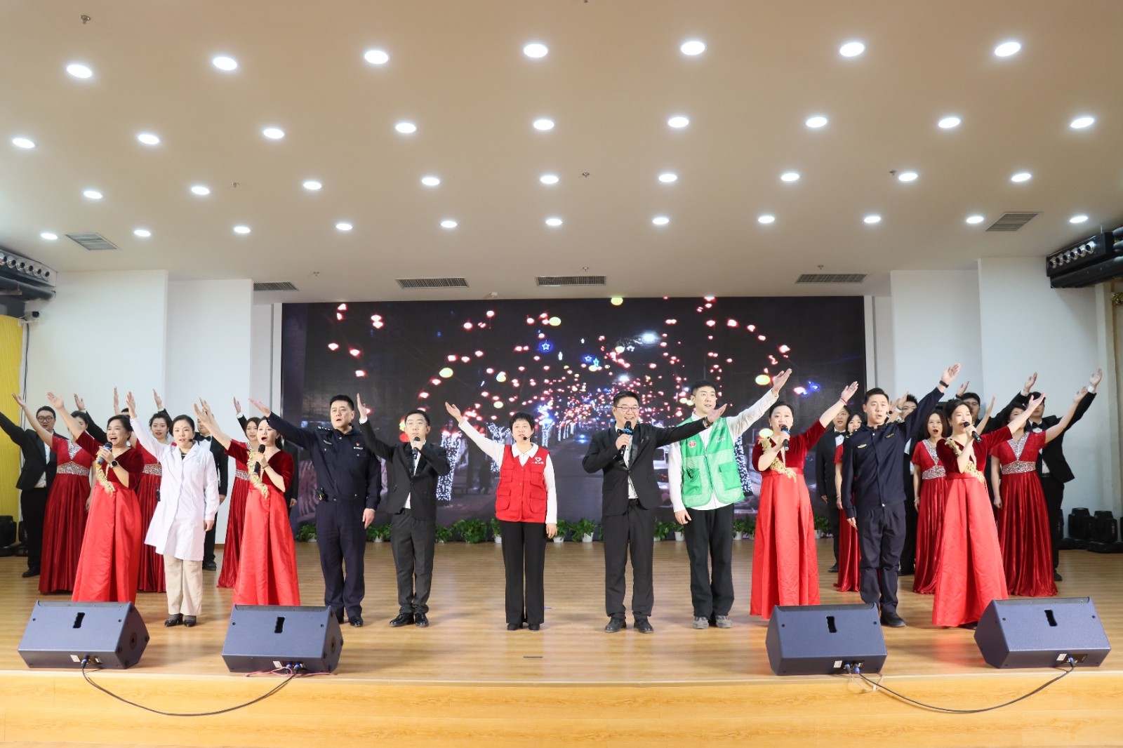 国家京剧院优秀青年京胡演奏家宋荣臻的京胡独奏《迎春》韵味悠长,与当日立春节气相映成趣,让观众沉醉于传统乐器的独特魅力;街道文化志愿者组成的老中青四人小组带来原创朗诵《书香八角 文润邻里》,声情并茂展现街道深厚文化底蕴与邻里和睦新风尚;国潮非遗变险《神变》技艺精湛、悬念迭起,尽显非遗文化的神奇与酷炫。整场联欢会在社区书记与网格员合唱的原创曲目《我们一起远航》中落幕,激昂歌声凝聚起共建家园的奋进力量,也承载着春日启航的美好期许。