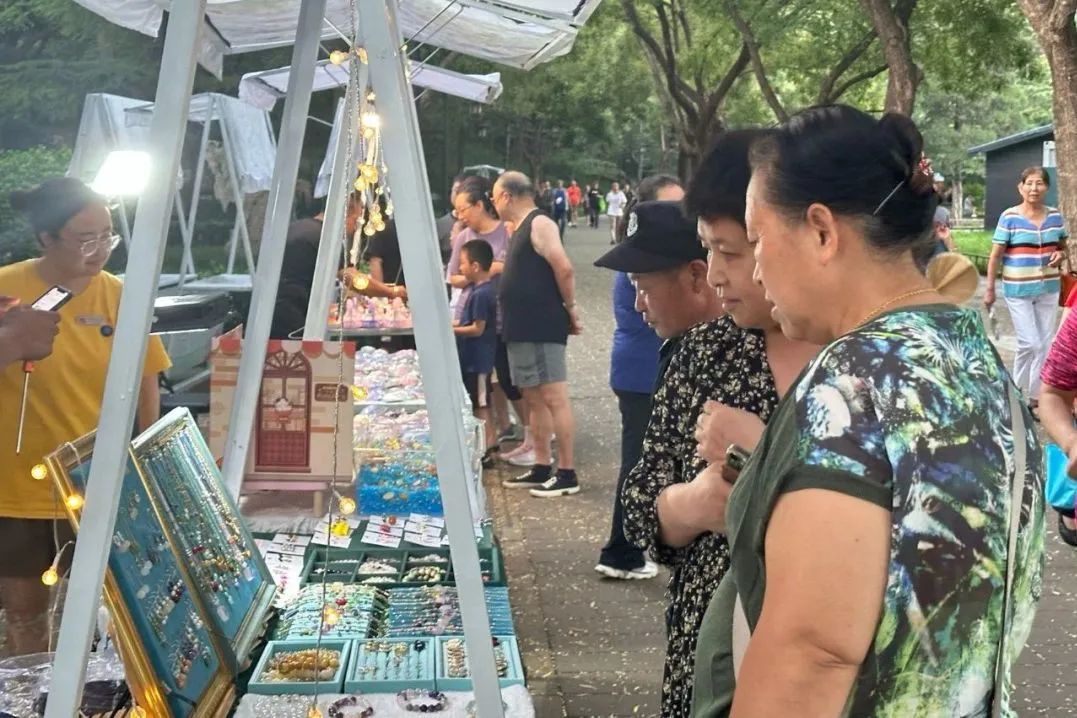 公园打造夜间湖光市集,各种手工艺品琳琅满目;蛋仔冰激凌、椰子冰沙、红柳大串等网红美食也会让游客大饱口福。