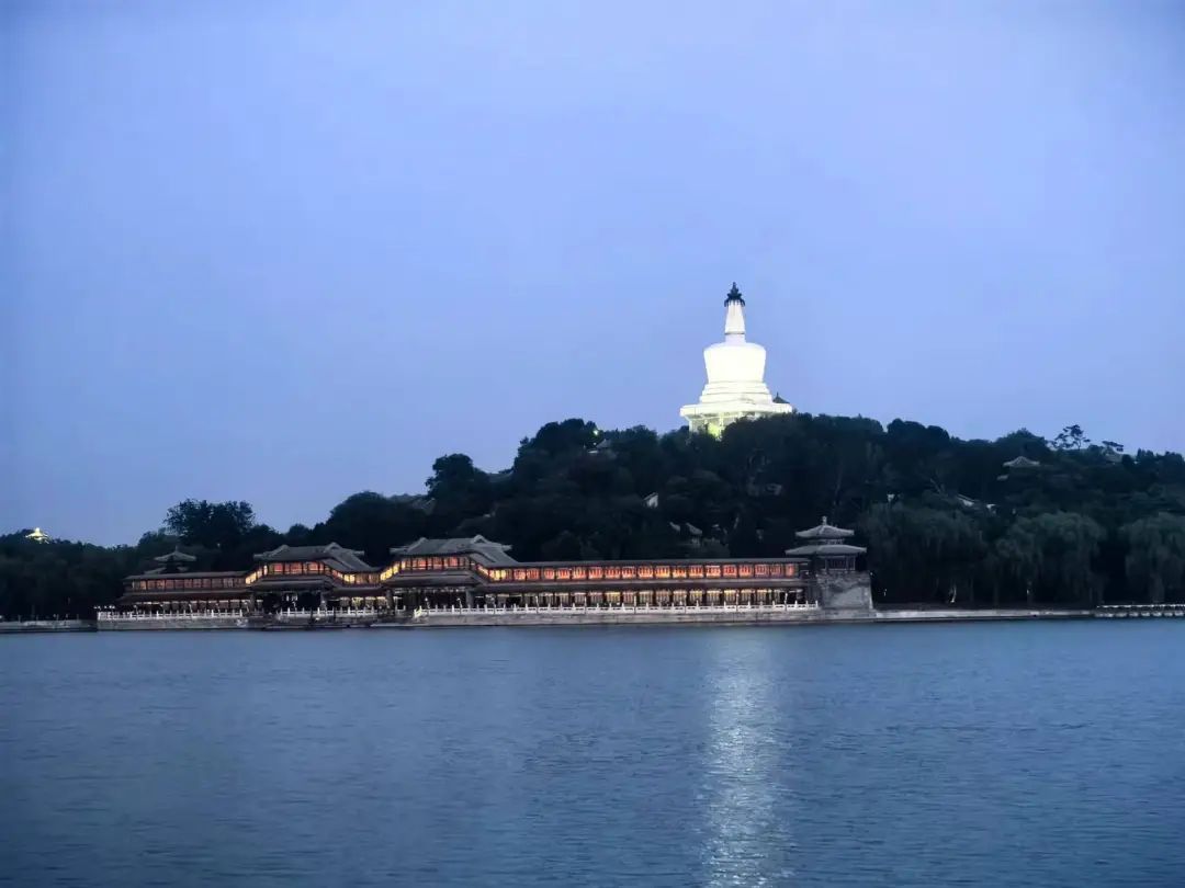 7月至8月,每周五、周六晚,随着夜幕降临,北海公园白塔、漪澜堂、五龙亭、小西天等标志性景观被点亮。