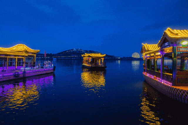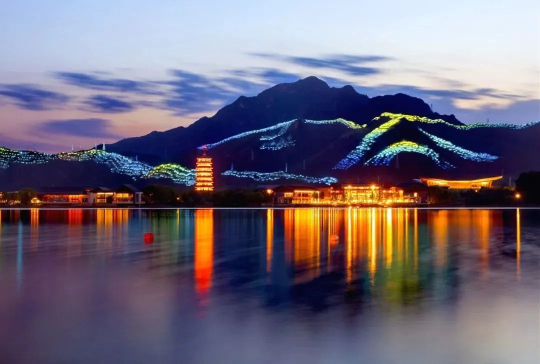 灯光点缀下的雁栖湖夜晚景观颇具魅力,多彩的灯线沿周边山脉延伸,自然山水在灯光的映衬下更加绚丽夺目,游客可乘游船在雁栖湖上夜航,尽享夜幕下湖光山色。