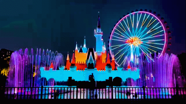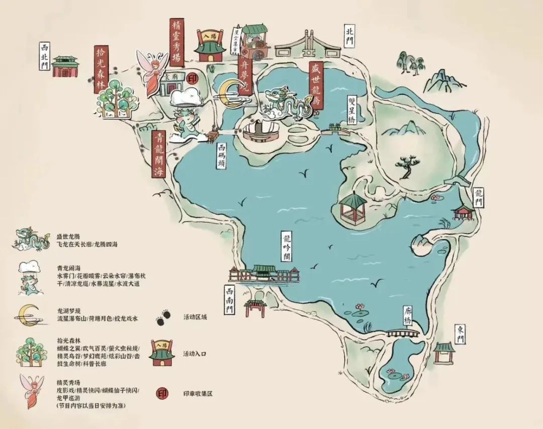 光影秀打造了盛世龙腾、龙湖梦境、青龙闹海、拾光森林、精灵秀场五大主题区,以及皮影戏、精灵快闪秀、龙甲巡游等多场趣味性和互动性相融合的演出巡游项目。