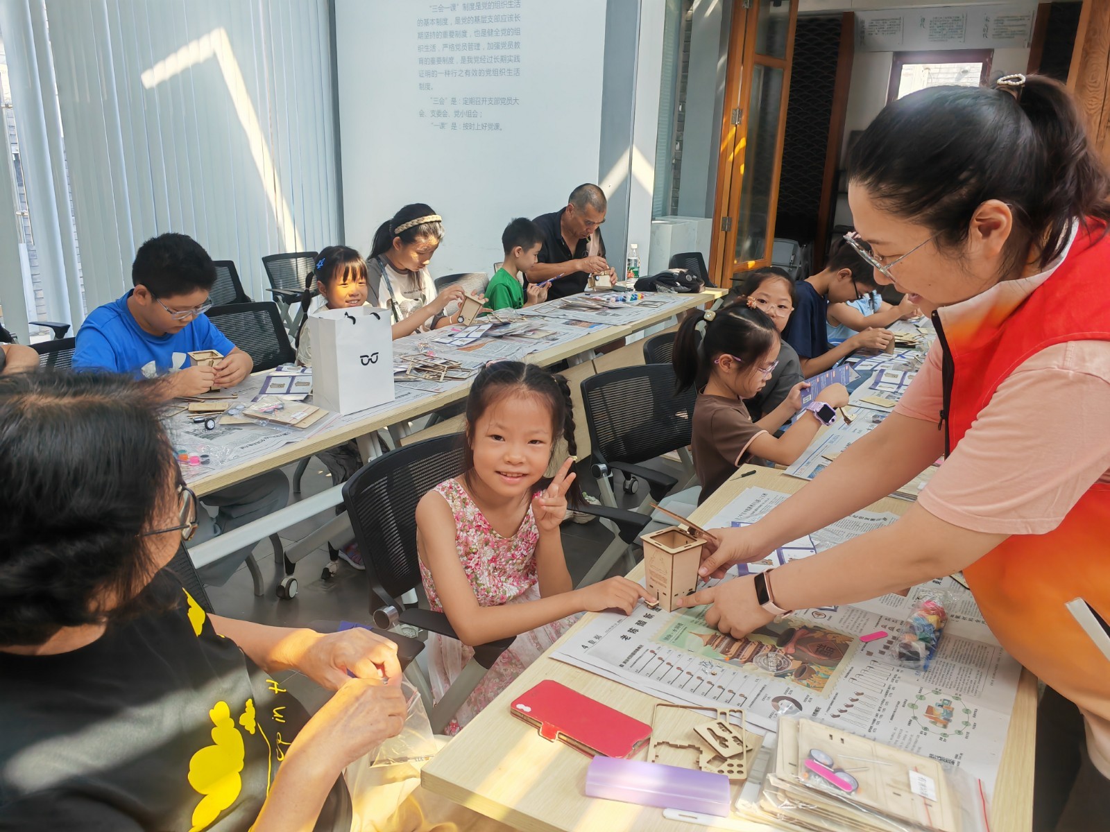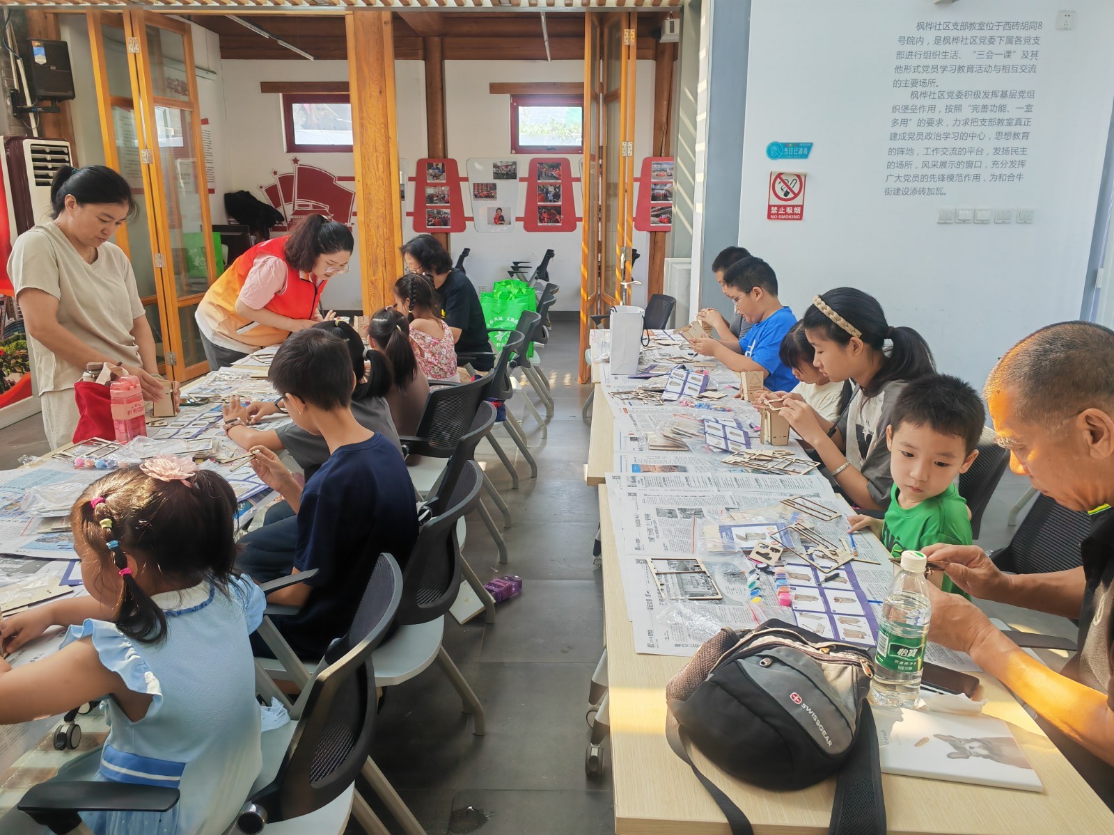 活动中,社区志愿者先通过问答的形式为青少年进行垃圾分类知识讲解,引导青少年从日常小事做起,积极践行绿色生活。随后,在DIY制作环节中,孩子们积极动手,借助螺丝刀、螺丝钉,将木板、轮子进行组装,并充分发挥自己的想象力,不一会儿,各式各样的环保垃圾桶就制作完成了。