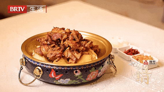 经过15到20分钟的猛火压制,使肉香,土豆香,洋葱香,充分融合,接下来还要进行二次收汁。土豆的外表形成一层脆壳,松软的内里吸足了肉汁和洋葱的香气,洋葱焦化,锅里充斥着香甜的味道。再浇一点烧肉的原油,让这锅羊肉香上加香。这道李鸣出品的无水焖肉,以定制的精致景泰蓝器皿呈现,至此,这道古老的菜完成了从旷野到餐桌的精致蜕变。