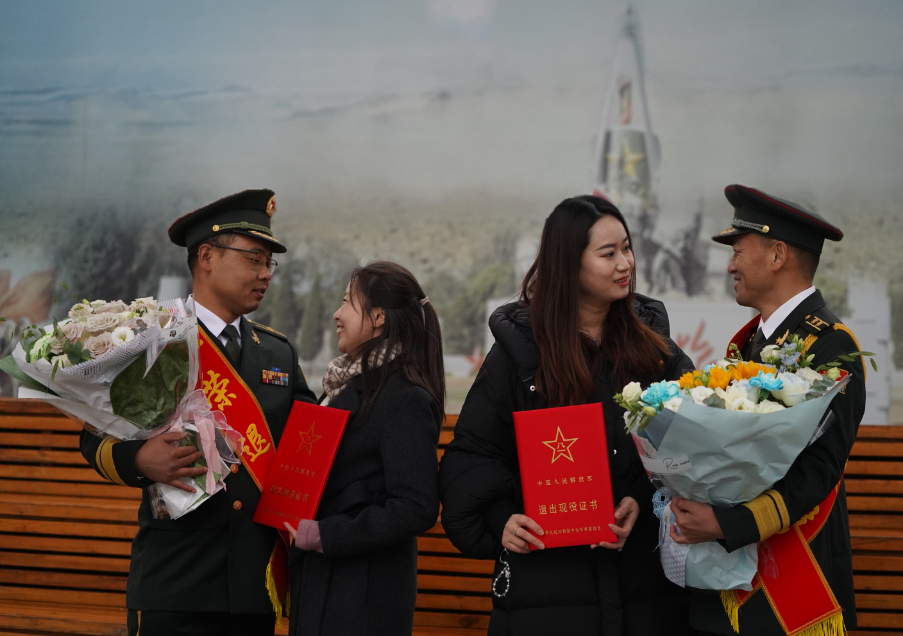 随着部队领导宣读退役命令