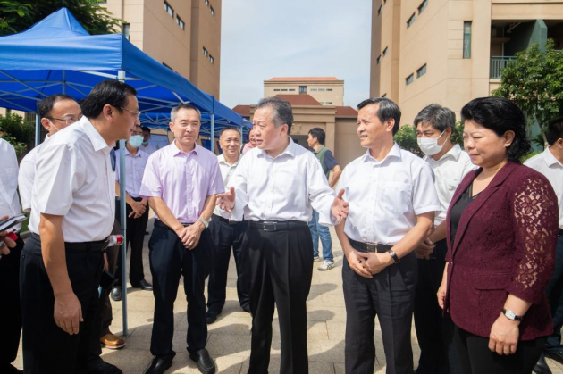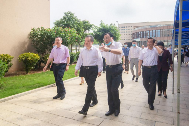 8月27日,广东省委教育工委书记,省教育厅党组书记、厅长景李虎率队莅临广东海洋大学寸金学院新湖校区调研和指导工作。湛江市副市长崔青、市教育局局长李更盛,广东海洋大学党委书记曹俊明、校长潘新祥,寸金教育集团副董事长李巧及该校领导班子陪同调研。