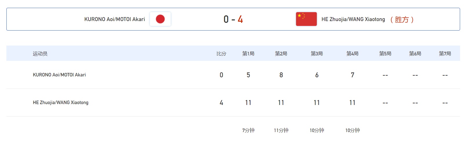 首先进行的是女双比赛,1号台是何卓佳/王晓彤对阵日本组合黑野葵衣/本井明梨,两人也是没有耗费太大的力气,平局一局10分钟,以大比分4比0横扫日本组合,强势晋级决赛。