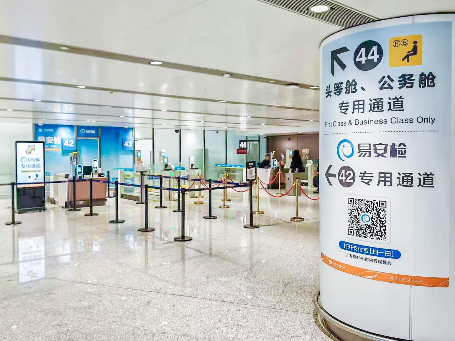 大兴机场将原有1条“易安检+普通旅客”混用通道扩容为2条独立“易安检”专用通道,分别位于航站楼三层国内安检区东侧3号与西侧42号通道。每日06:00至20:00开放,精准覆盖早、晚出港高峰时段,为预约成功的易安检旅客提供高效过检服务,减少排队时间,保障旅客通行便捷性。