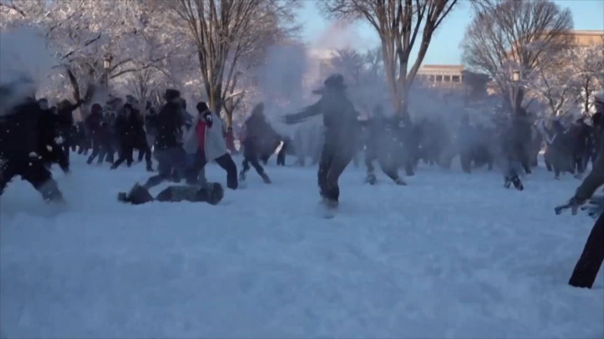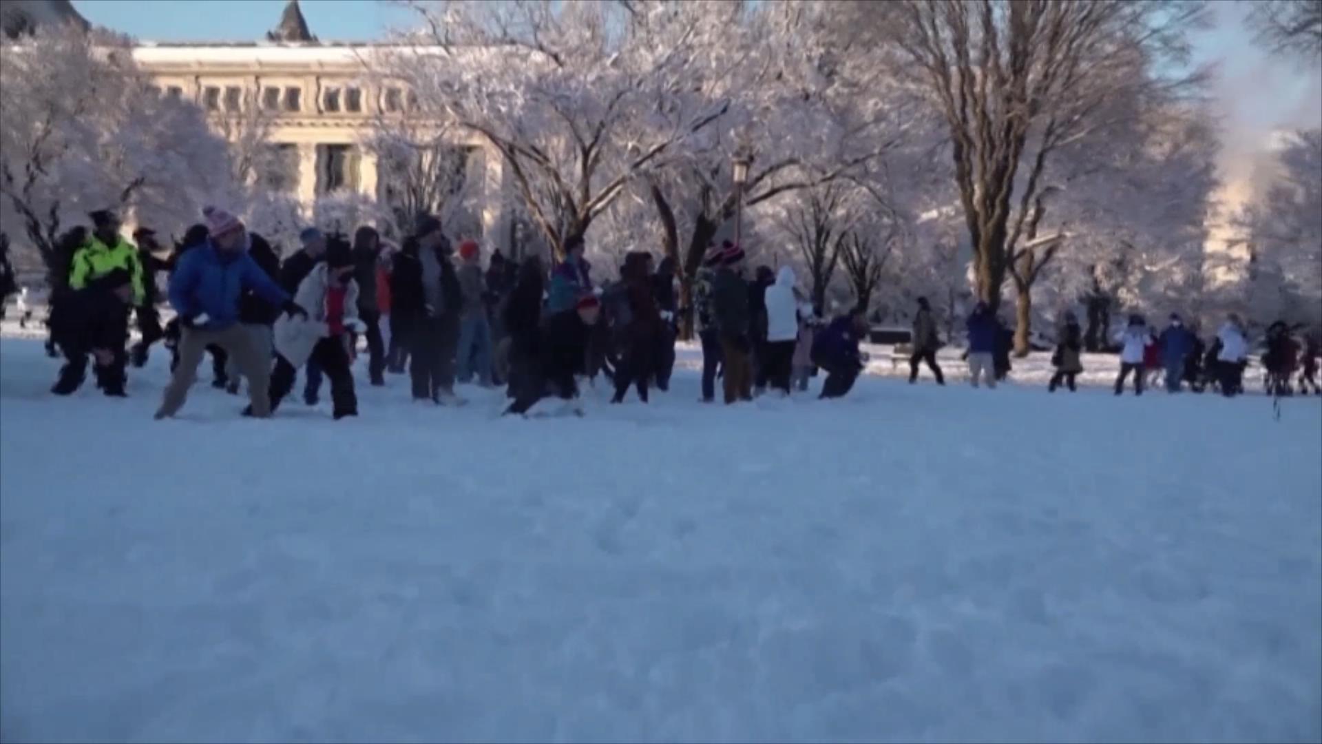 大雪停歇的间隙,不少华盛顿居民聚集到国家广场打雪仗,尽情释放疫气象部门预计,华盛顿的降雪量达12.7到25.4厘米,提醒人们恶劣天气将影响正常出行,导致部分地区断电。