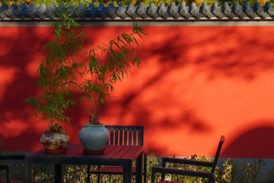 随手一拍,光影与朱墙交织