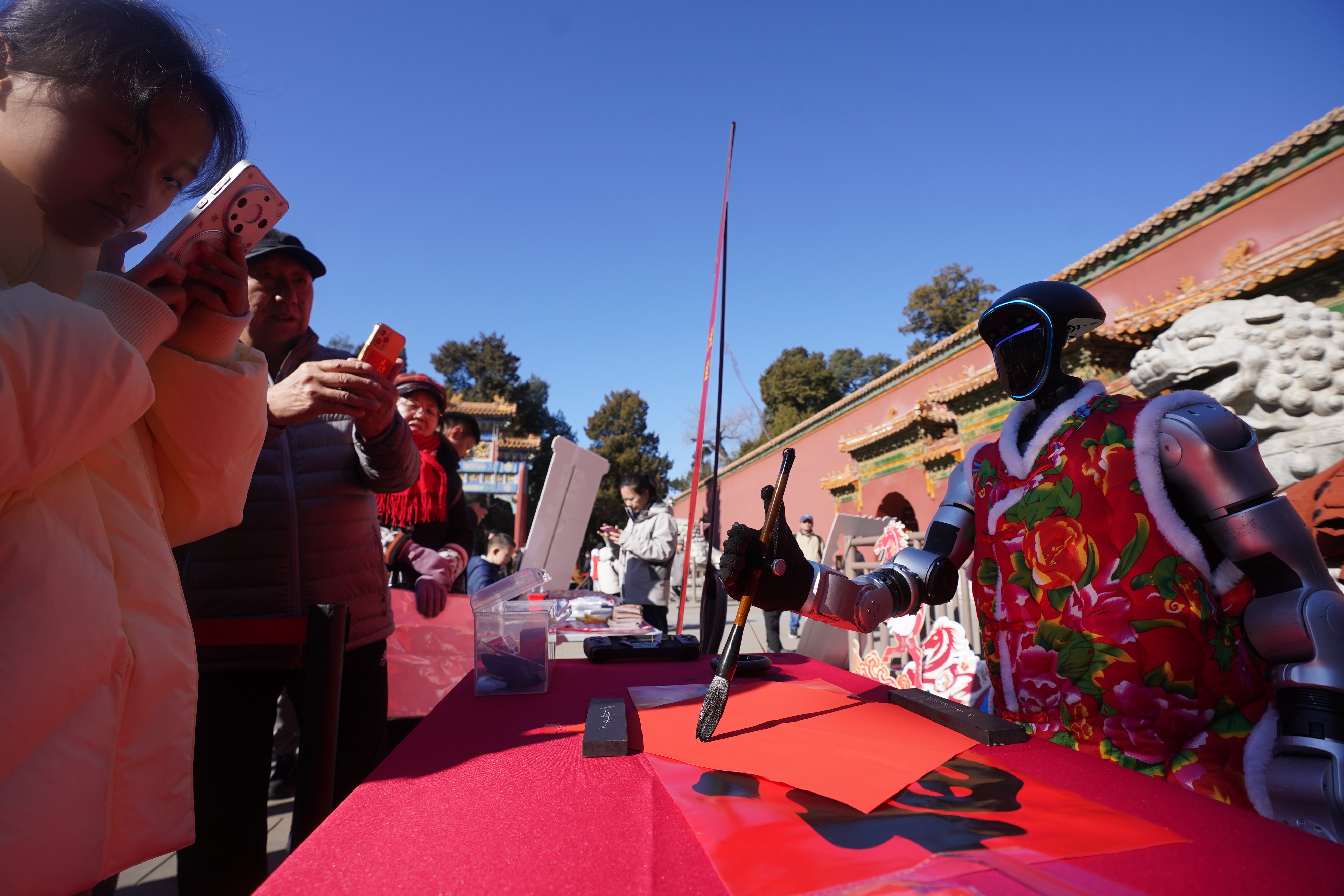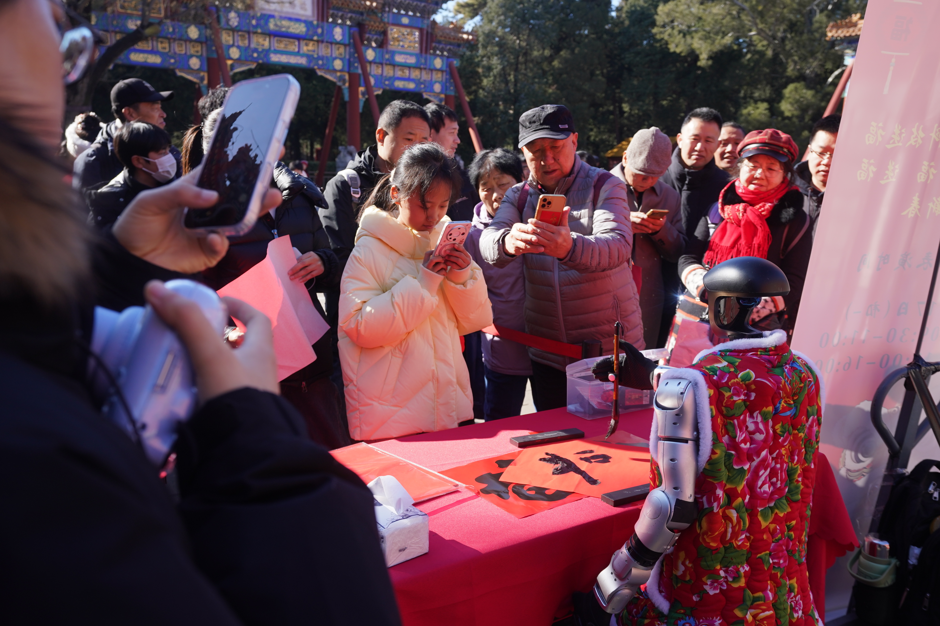 节日期间,公园将举办多场精彩活动,让游客深度体验年趣。初一上午,智能机器人在观德殿院落内挥毫写福,在寿皇殿广场带来舞蹈表演,吸引众多游客驻足。