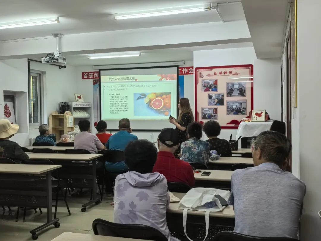 首座御园二里社区新时代文明实践站开展老年人食品安全知识讲座。活动中,老师从饮食安全的要求、购买食品小常识、理性对待保健品和正确辨别食品谣言四方面向大家进行了详细的讲解。