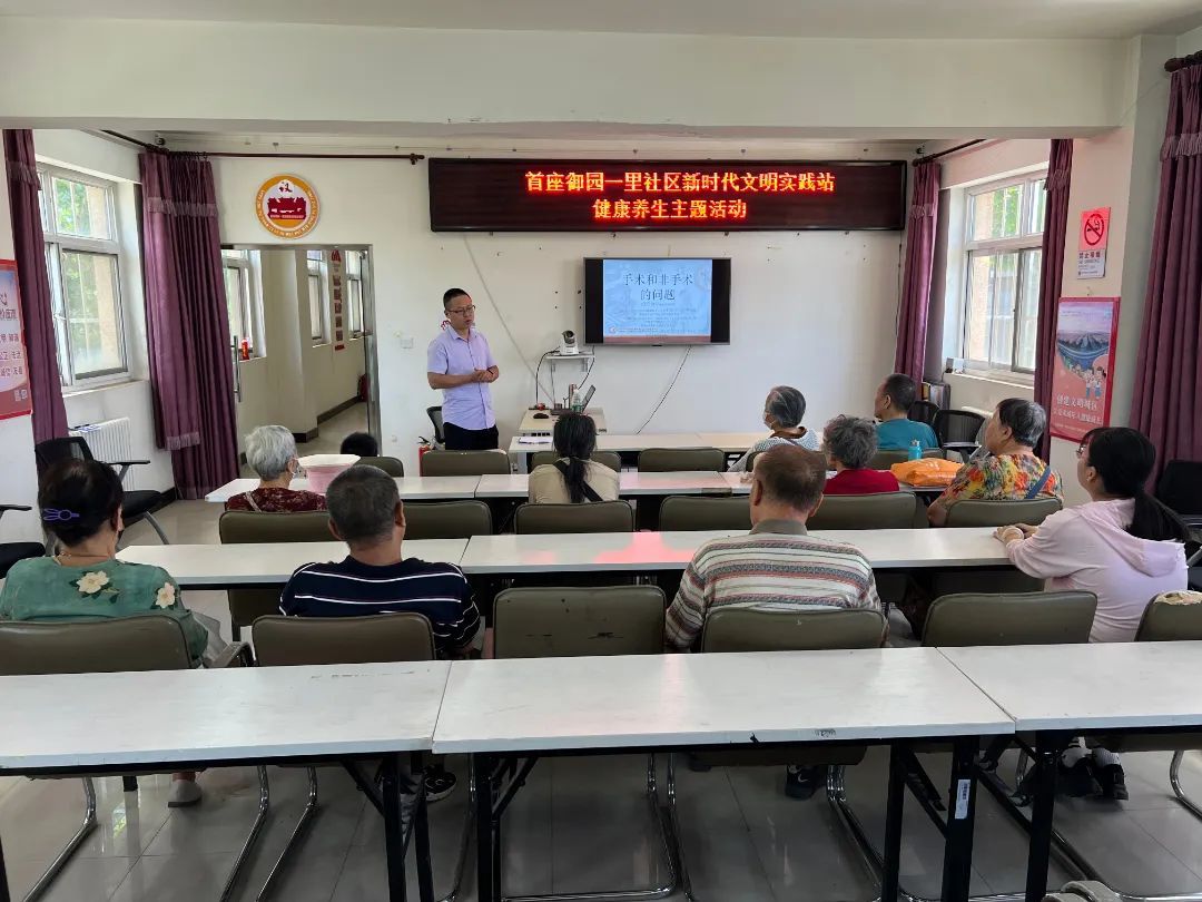 首座御园一里社区新时代文明实践站开展“健康知识讲座进社区”活动,进一步增强辖区居民的养生意识,引导居民树立健康科学的生活方式。