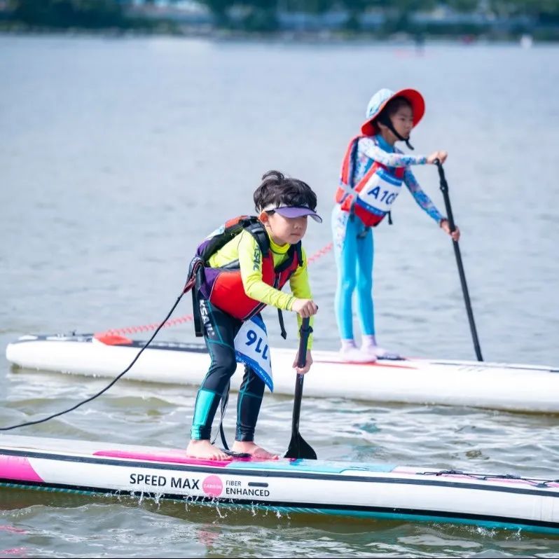 桨板运动是一项结合平衡与划行技巧的水上运动,参与者站在充气或硬质桨板上,手持单桨划动前进,兼具休闲与竞技特性。赛事分为U15、U12、U9以及公开组四个组别,赛事体系通过科学划分年龄组别,构建起覆盖全年龄段选手的成长路径。