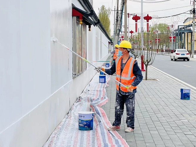 记者来到白庙村东街,看到工人师傅正在对道路两侧的墙面进行粉刷和修缮。洁白的墙面不仅美化了村容村貌,还大大提升了村里的卫生环境。据项目负责人介绍,本次白庙村墙面粉刷工程整体粉刷面积为4万平方米,于4月1日启动,预计5月初正式完工。