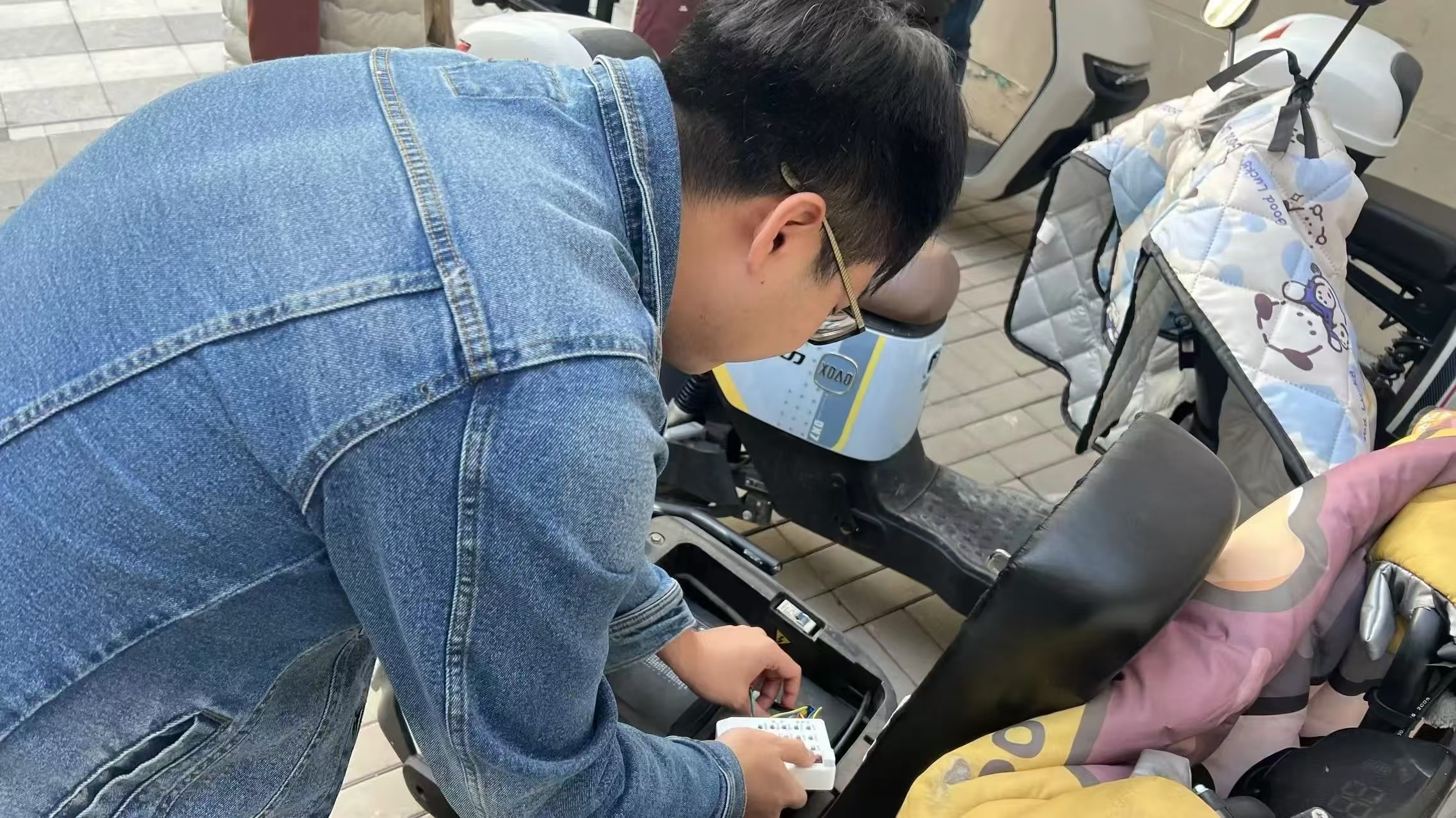 在北辛安第三社区筹备组,为了进一步保障居民们的骑行安全,社区安全员利用专业仪器为居民的电动自行车进行了细致的检查。现场,检查人员逐一对居民电动自行车的制动系统、电池健康等重要部件进行排查,确保每辆车都处于良好的运行状态。对于发现的问题,安全员现场给予了专业的维修建议或解决方案。
