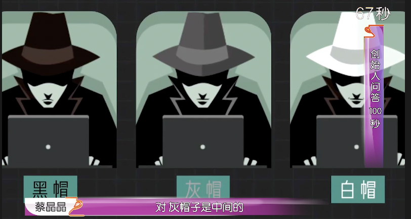 蔡晶晶:在网络安全世界,我们对于黑客有几种不同的帽子颜色,一个是白帽子,一个是黑帽子。