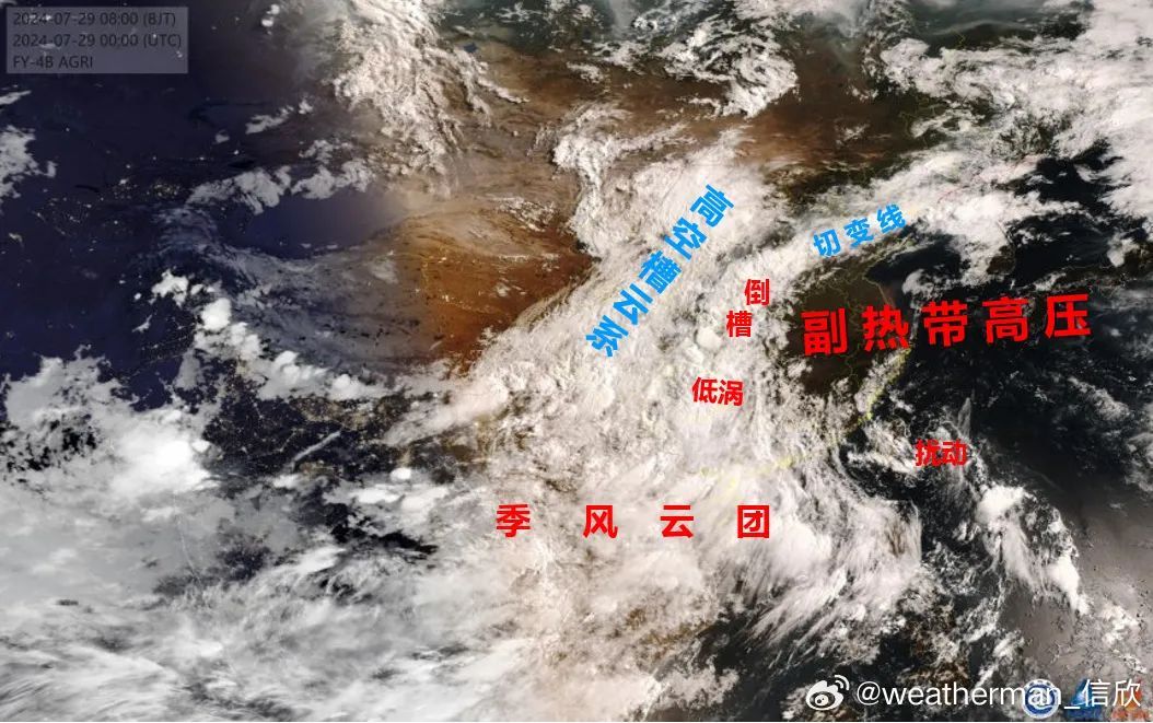 ↑ 近日我国强降雨形势示意图(图片来源:@weatherman_信欣)