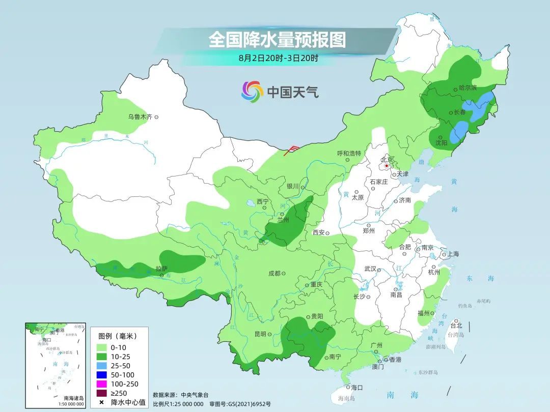 7月底至8月上旬,我国主雨带将位于西南地区、西北地区东部至华北、东北一带,累计雨量较常年同期偏多2~4成,部分地区偏多5成至2倍。