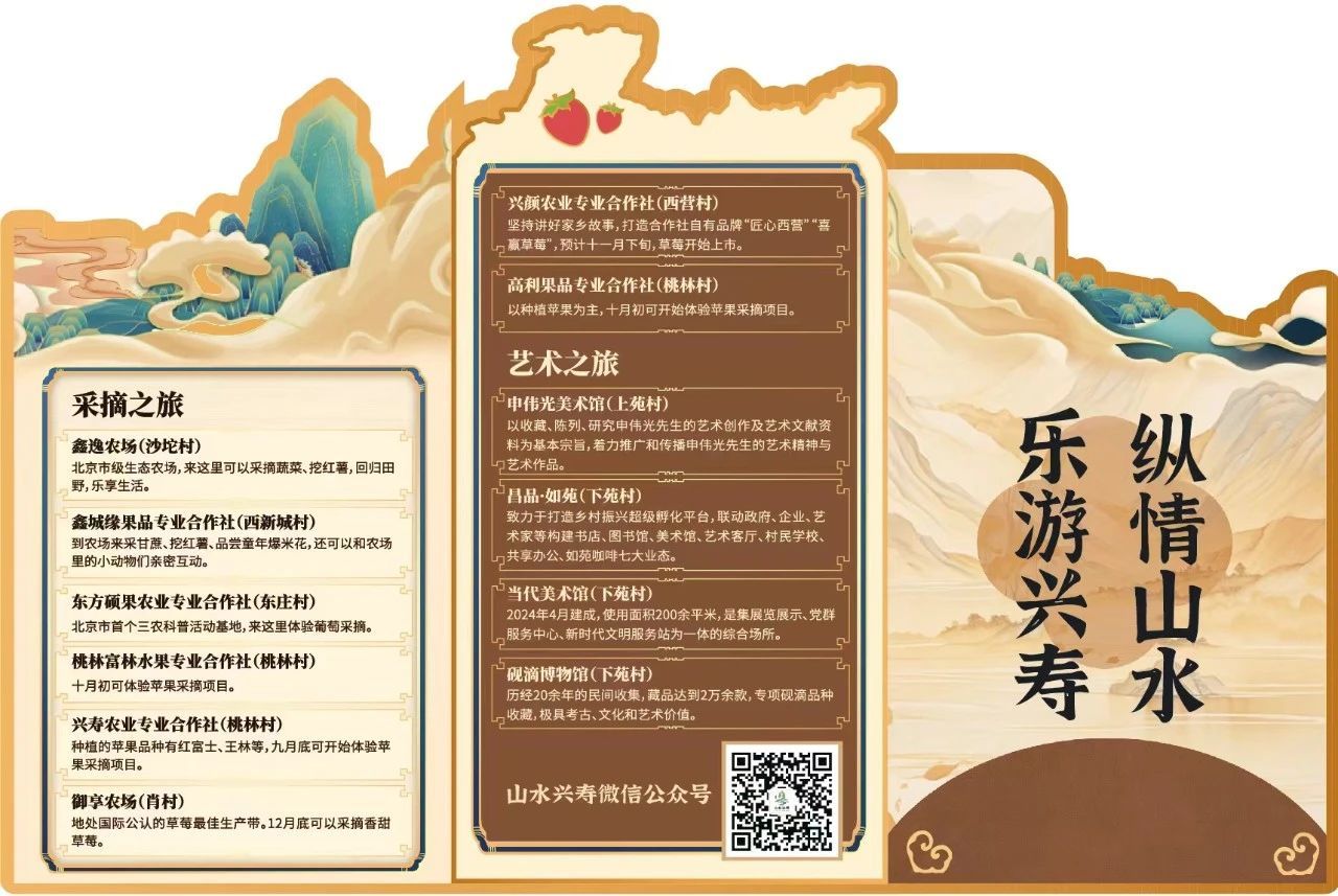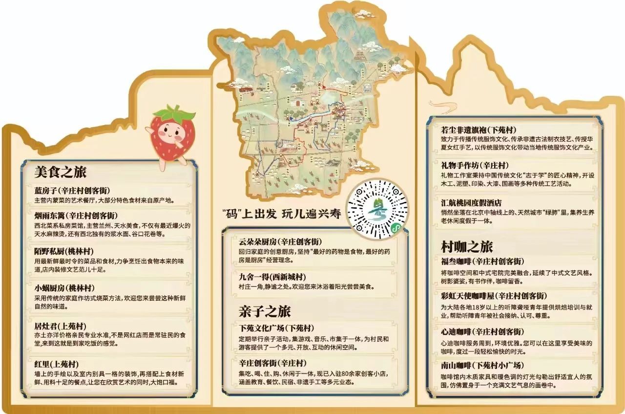 从生态采摘到艺术参观,从美食体验到乡村住宿,为了方便游客们更好地游览兴寿镇,当地还精心设计了两条秋季旅游线路。无论是“山水如画 乐享兴寿”还是“丰收金秋,兴寿有你”,都能让游客们充分体验到兴寿镇的独特魅力。