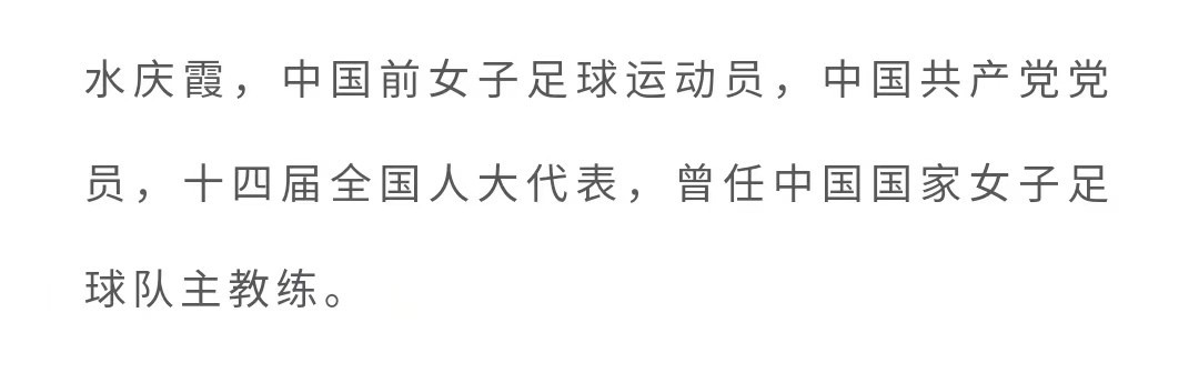 ◆ 水庆霞,全国人大代表、中国女足名宿、前国家队主教练