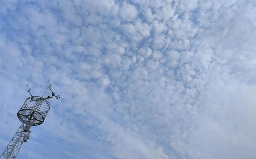 低涡外围云系影响下的京城雨水频现,天空也不时浮现出这种鱼鳞状的卷积云。它通常都预示着将有不稳定的天气系统影响,并将出现阴雨、大风天气。农谚有“鱼鳞天,不雨也风颠”指的就是这样的云天了…