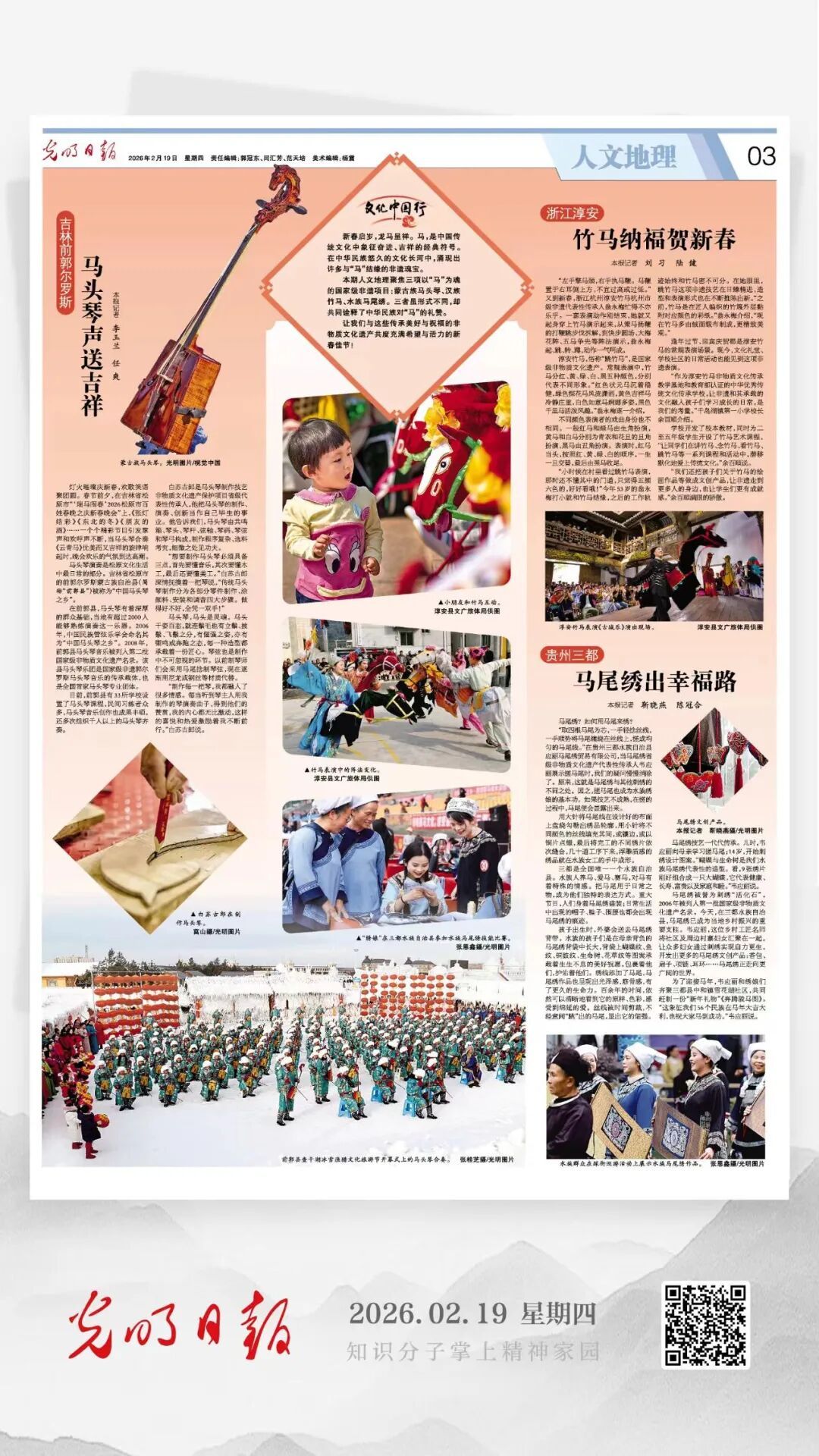 本期人文地理聚焦三项以“马”为魂的国家级非遗项目:蒙古族马头琴、汉族竹马、水族马尾绣。三者虽形式不同,却共同诠释了中华民族对“马”的礼赞。