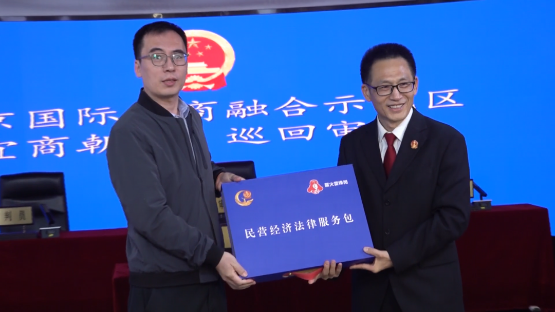 庭审结束后,徐东副院长向北京商务中心区管委会,送出“民营经济法律服务包”,帮助企业了解相关法律知识,保护自身合法权益。