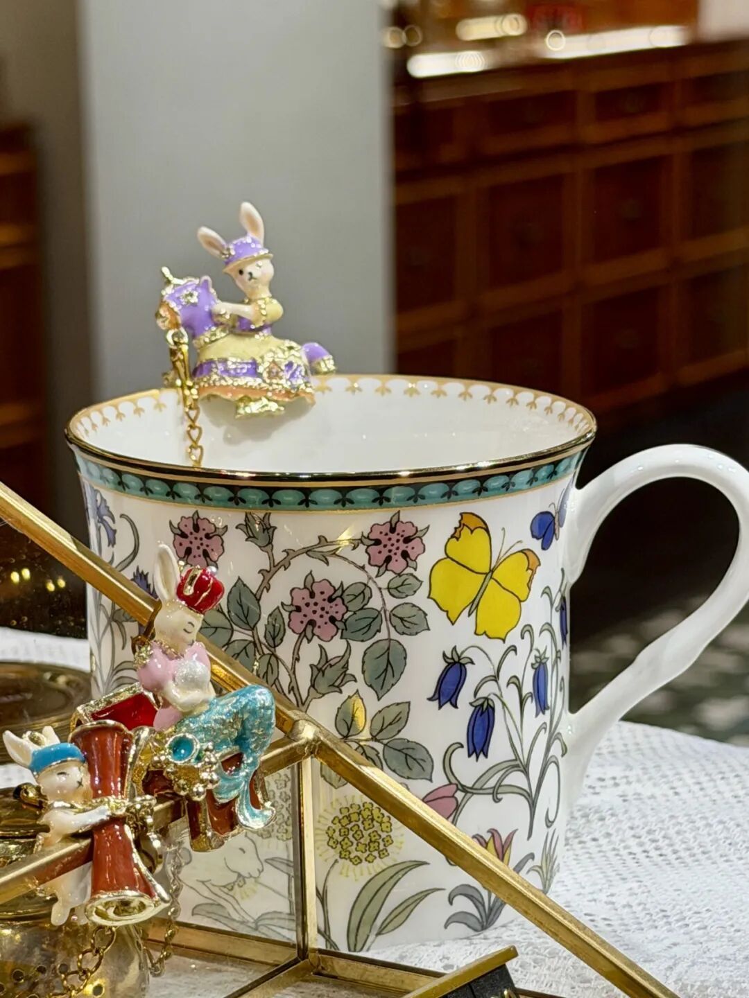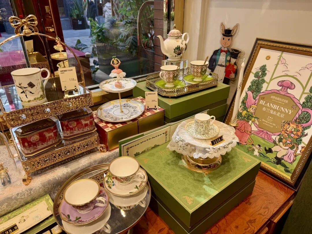 几步之遥的布兰兔英式茶铺北京首店,则演绎着中西文化的碰撞。作为2025年10月入驻廊房头条的特色业态,这家由几位中央美院毕业生创立的品牌,以英式下午茶为基底,融入中国元素,并在新春之际推出特色马年主题系列。除了茶饮,珐琅彩首饰盒、兔子元素文创等产品兼具颜值和实用性,门店外立面的打卡雕塑和室内陈列,也让廊房胡同的古朴传统多了几分精致。