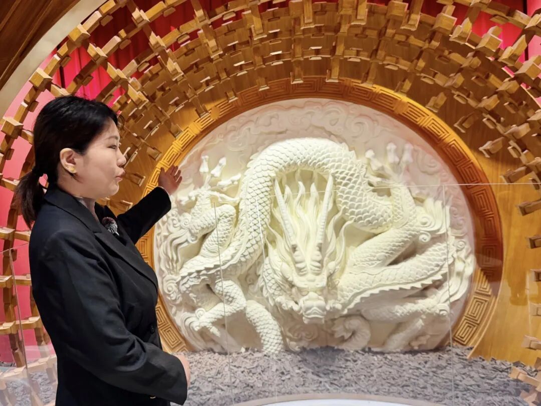 巧克力博物馆的两层空间里,白巧克力雕琢的中国龙气势恢宏,黑巧克力复刻的中轴线清晰可辨。甚至连国博热门展品都能在此近距离欣赏,等比例还原的九龙九凤冠用1700多个零件再现非遗工艺的精美。