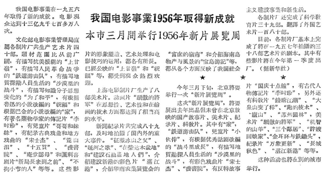 上世纪50年代,戏曲电影始终在电影界占有重要分量。以1956年为例,在文化部电影事业管理局直属各制片厂生产的40部艺术片中,就有《宋士杰》《十五贯》《搜书院》等多部彩色戏曲电影。(1957年2月10日《北京日报》3版,《我国电影事业1956年取得新成就》)1958年,在本报和北京电台联合举办的推选一九五七年最受欢迎的十部国产影片活动中,观众投票选出了两部最受欢迎的戏曲电影:《宋士杰》和《李二嫂改嫁》。令人感动的是,有观众因为《李二嫂改嫁》12月才上映而担心它会选不上,于是写了很长的信,把它和别的戏曲电影作对比,说明它是一部优秀影片,要求报纸和电台推荐它。由此也可见人们对优秀戏曲电影的热爱之深。(1958年2月2日《北京日报》3版,《一万七千多观众参加了推选活动》)