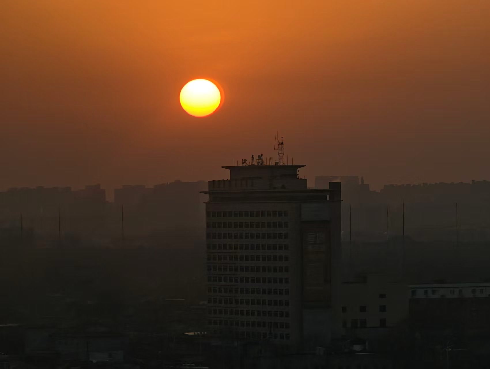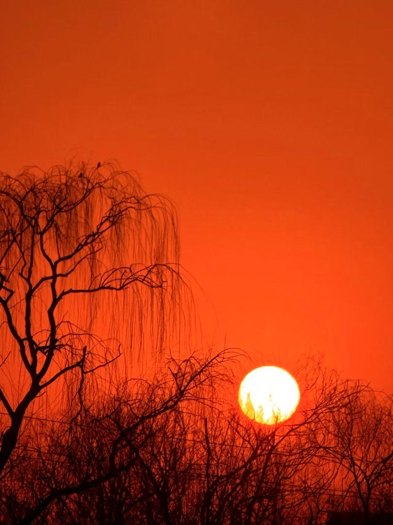 2月13日晨,北京。东方天际,又大又圆的太阳喷薄而出,朝气满溢,新的一天活力开场!