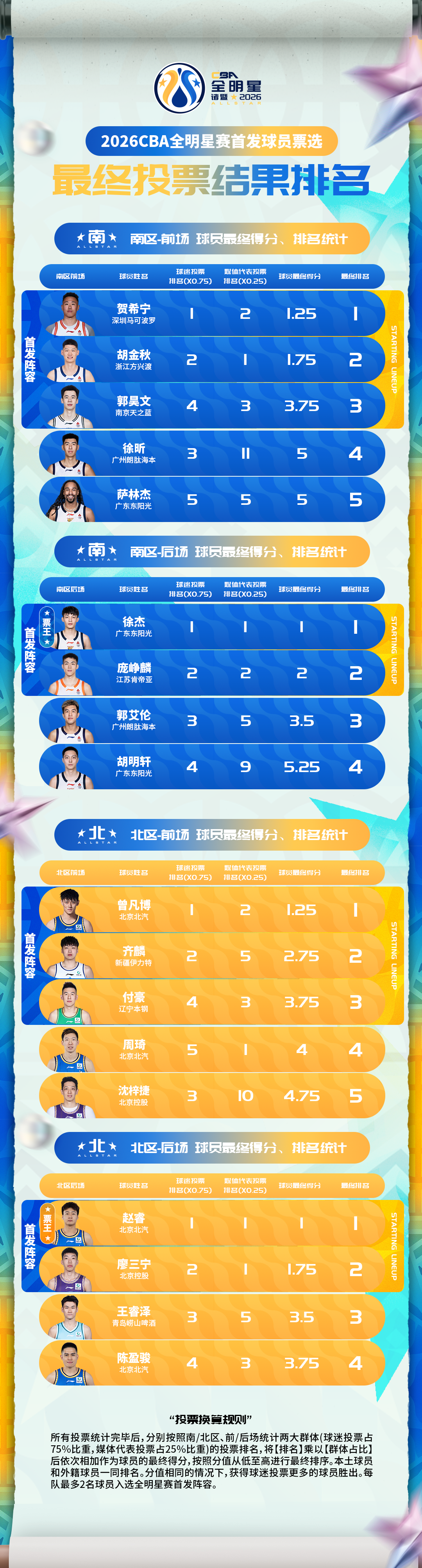 2026CBA全明星赛投票结果公布:徐杰、赵睿当选南北票王_北京时间