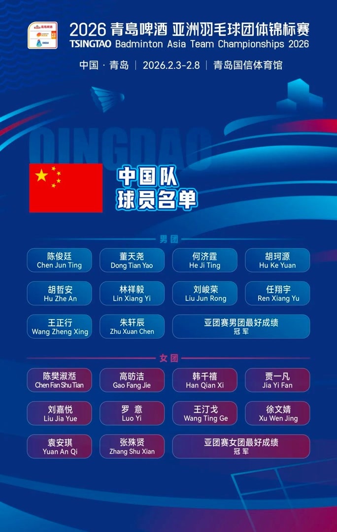 月3日,2026年亚洲羽毛球团体锦标赛在青岛开幕,此次赛事持续至2月8日。开赛首日,中国女团轮空,中国男团总比分5比0战胜中国澳门队。