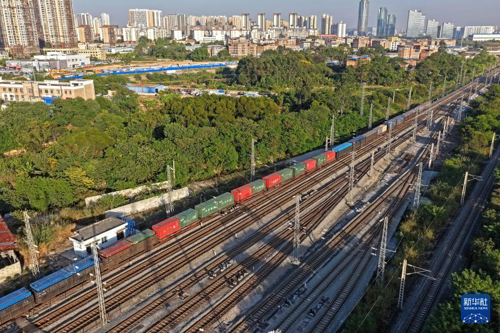 2025年11月,一列中越班列驶出南宁国际铁路港。 新华社记者 周华摄