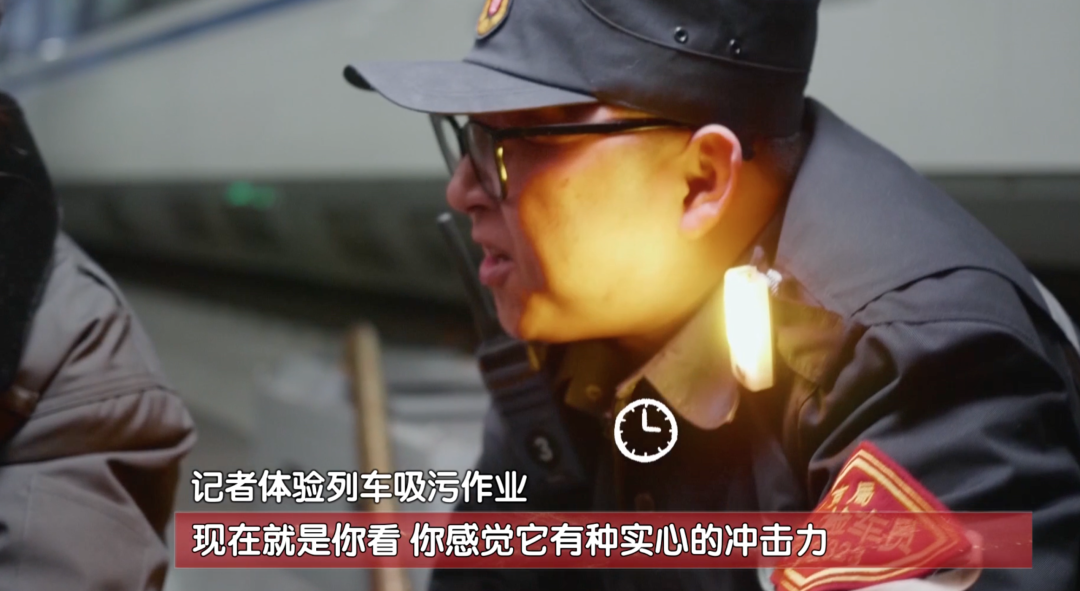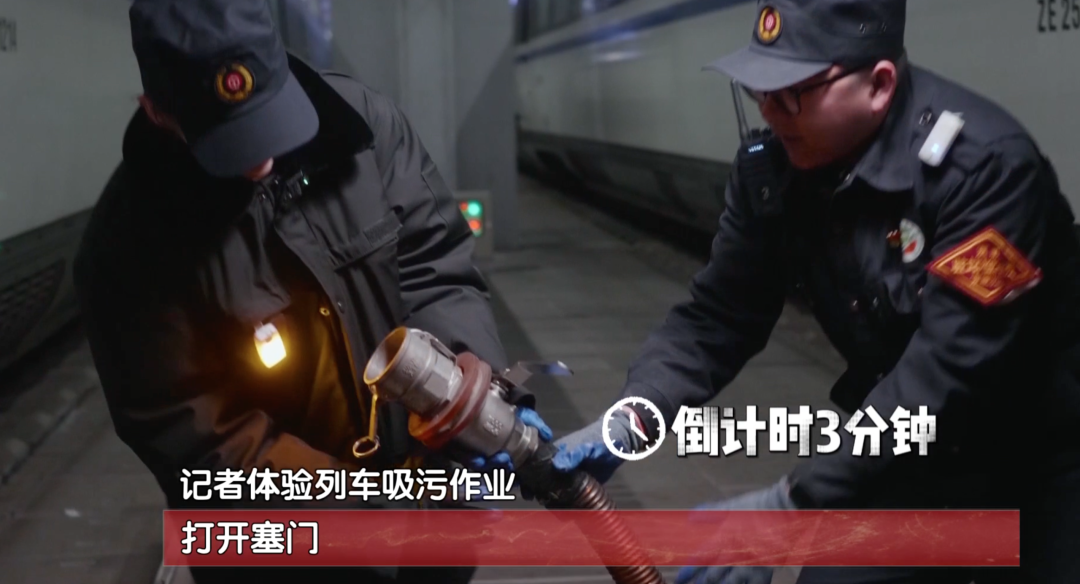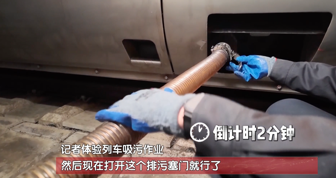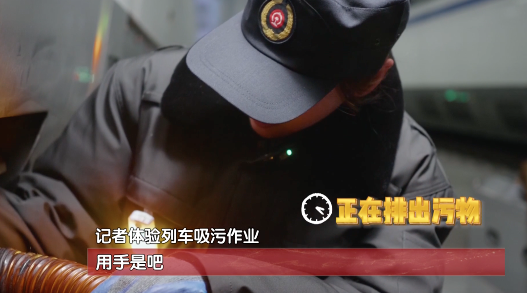 新春走基层记者在李林彬的帮助下,体验了一把列车“极速吸污”。