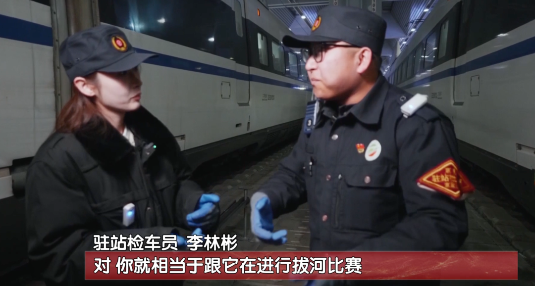 春运期间,北京丰台站地面上熙熙攘攘,而在列车车底,另一场“战斗” 也在进行中。