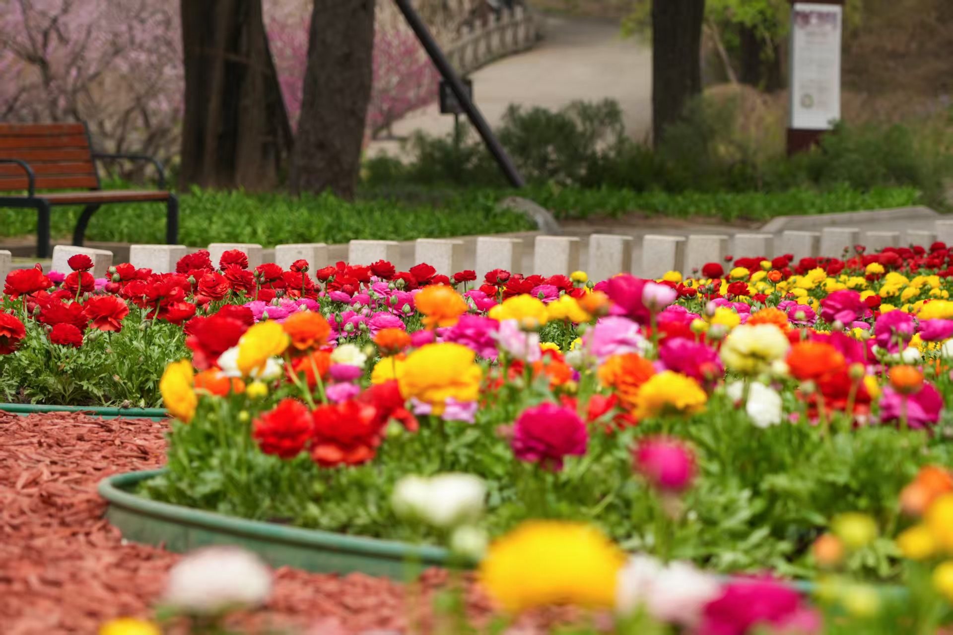 与往年相比,今年新增布展区域520平方米,总观花面积达2500平方米,使用花毛茛、鼠尾草、羽扇豆、凤仙、天竺葵、紫罗兰、蓝盆花等30余种时令与宿根花卉共2万余株,打造出“一步一景、一景一韵”的春日花卉景观。游客可沉浸式感受繁花与诗意交织的春日氛围。