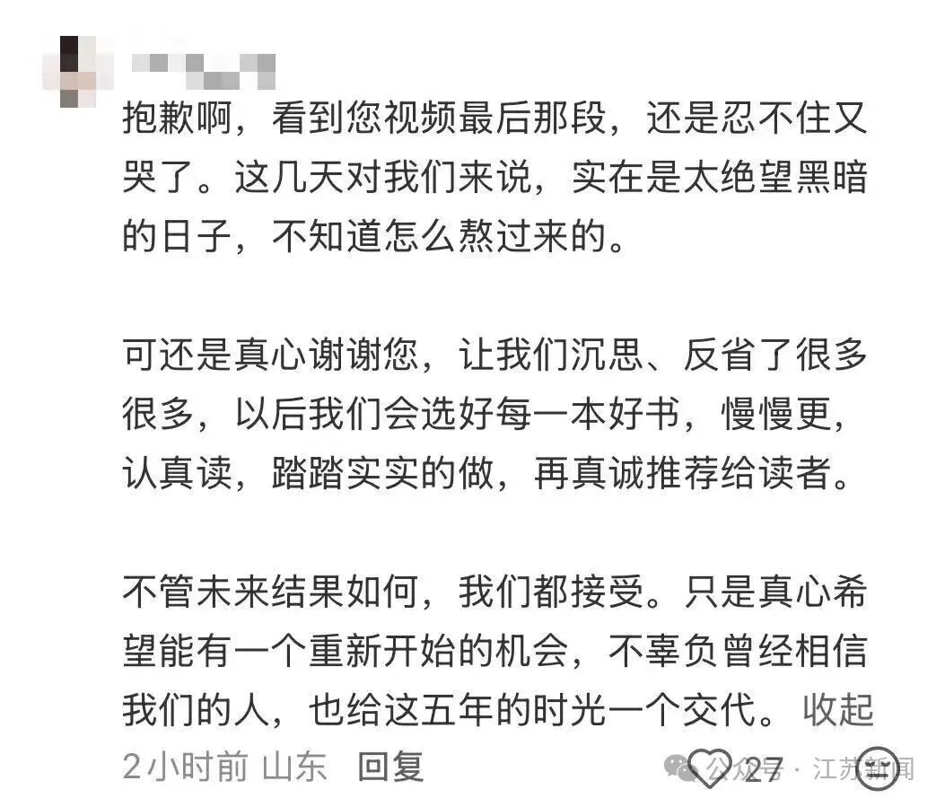 记者注意到,3月19日,疑似被“打假”的头部博主在“首席读书官”评论区留言道歉——