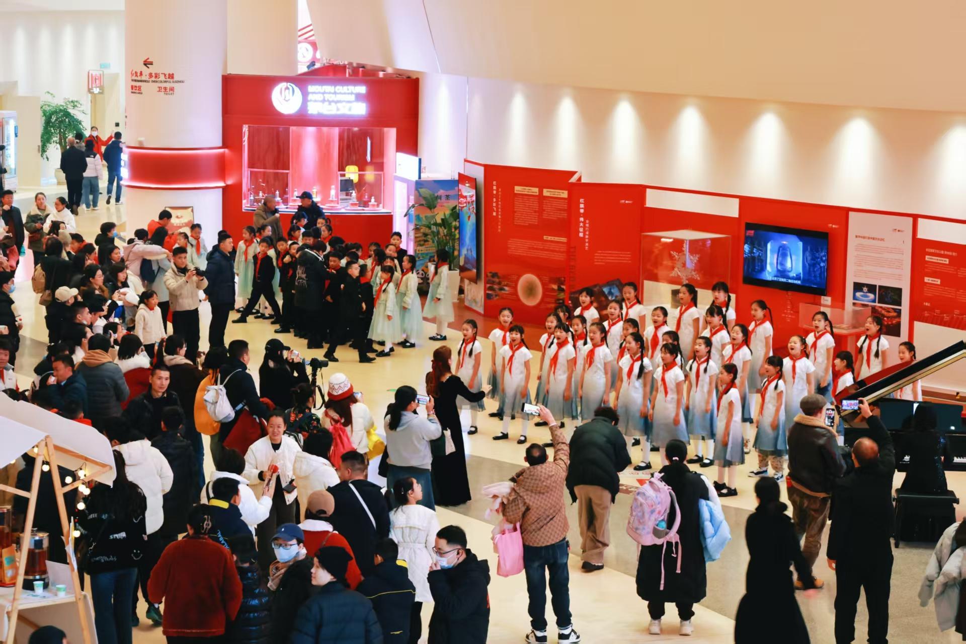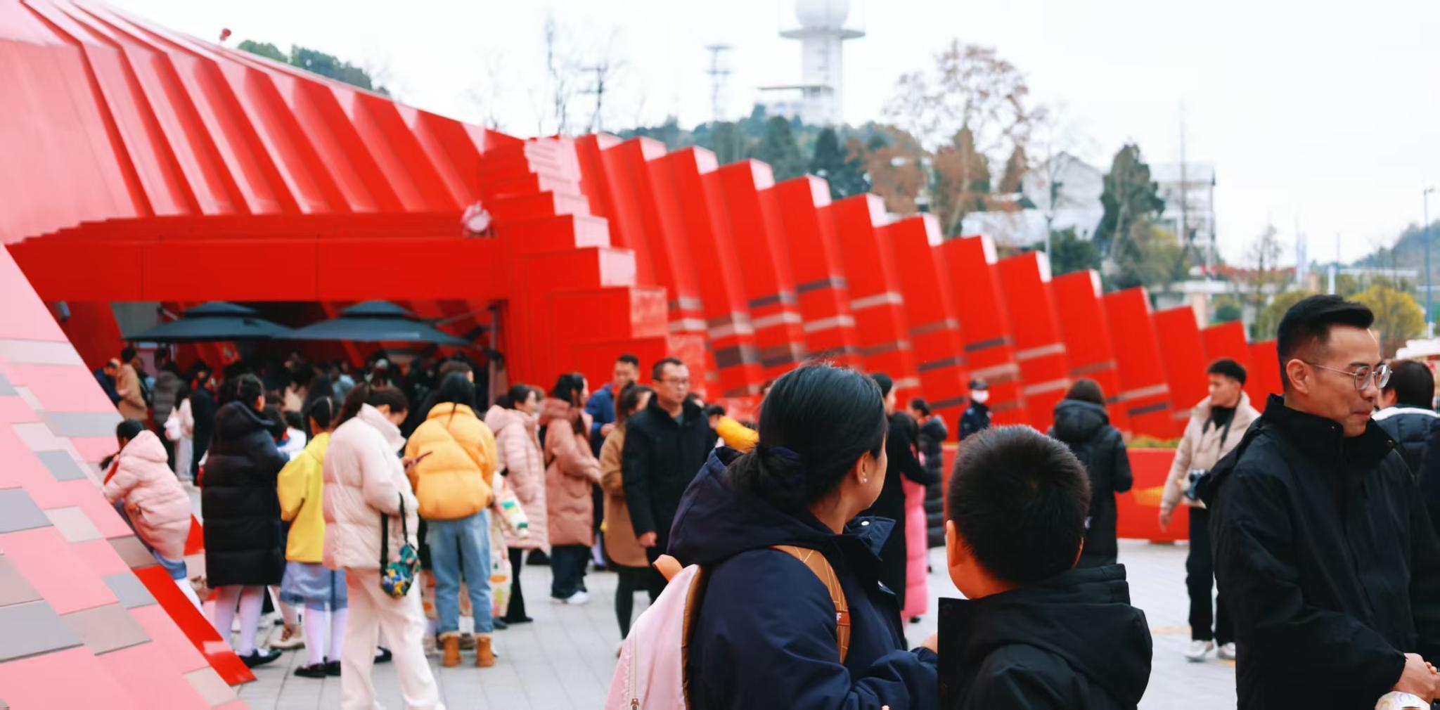 元旦假期首日,红飘带场馆内早已人头攒动。不少游客前往观演《红飘带・伟大远征》《红飘带・多彩飞越》两大核心演艺,在数字光影中重温长征热血初心,于8K球幕下饱览贵州壮阔风光。“先看光影盛宴感受红色精神,再逛中医市集调理身体,这样的元旦安排既有意义又惬意。”带着家人前来的市民杨女士说。
