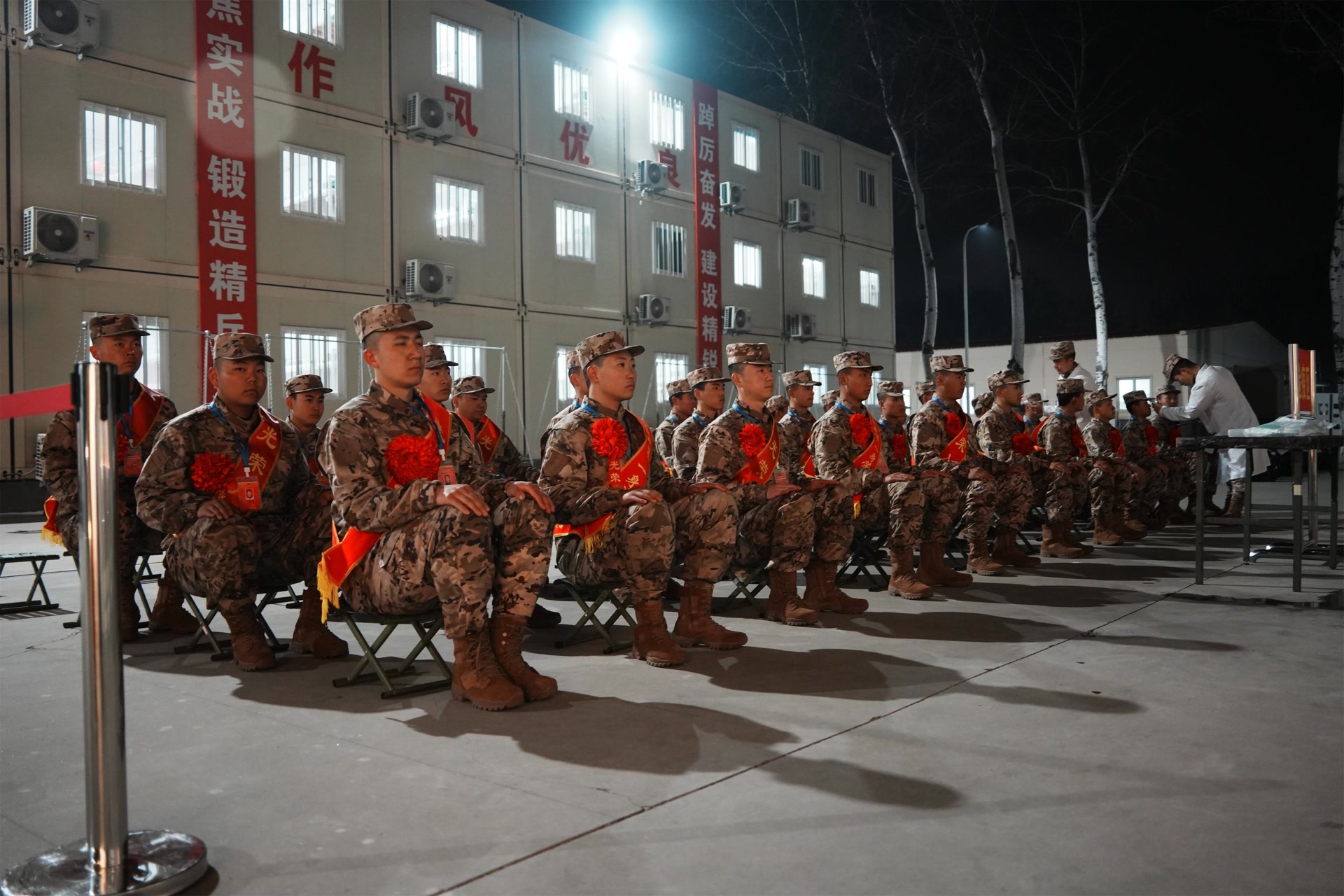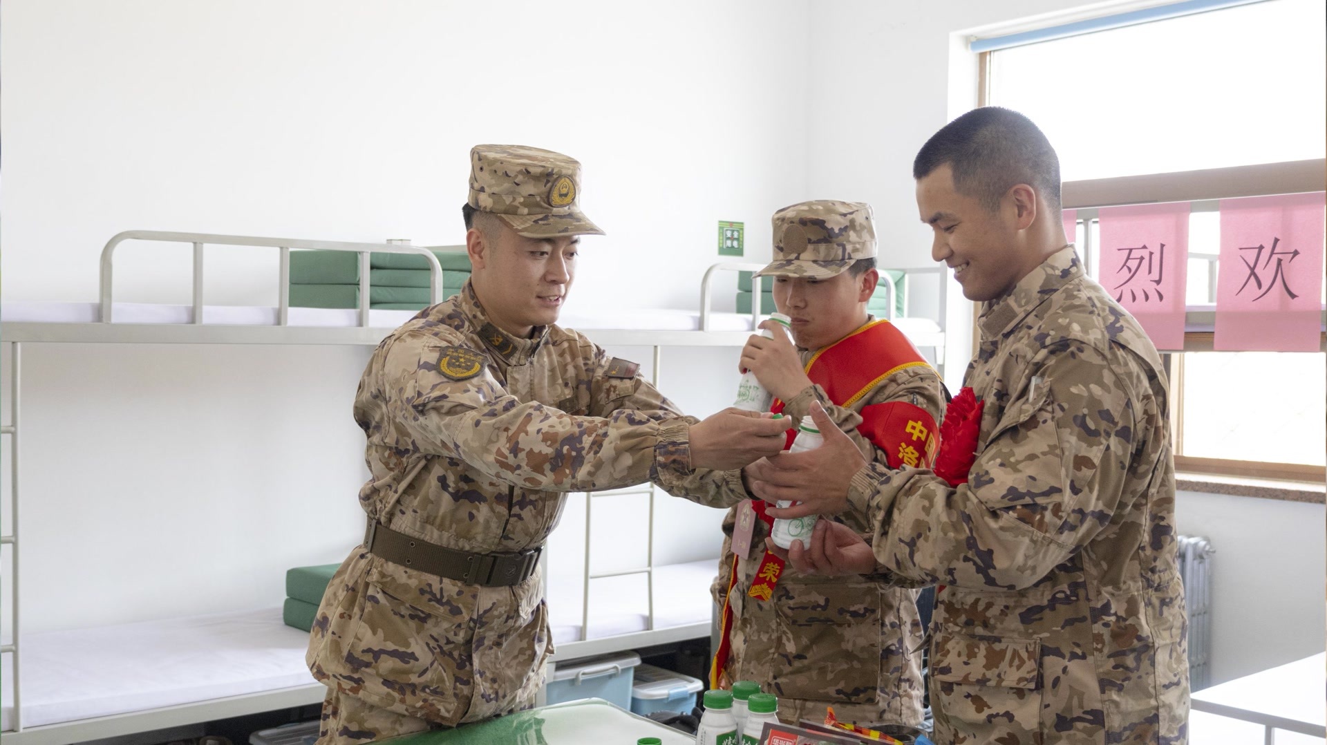“一路辛苦了!”“欢迎回家!”早已等候多时的带兵骨干们立即迎上前去,热情地接过新兵手中的行囊。一句句温暖的问候,一张张亲切的笑脸,瞬间拉近了彼此的距离,消除了新兵们初到陌生环境的拘谨与不安。