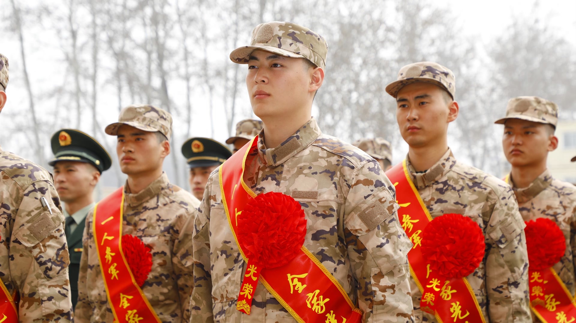身披“光荣入伍”绶带,胸戴大红花,2026年春季入伍新兵们告别家乡,在亲人的嘱托与祝福中,来到北京的军营。