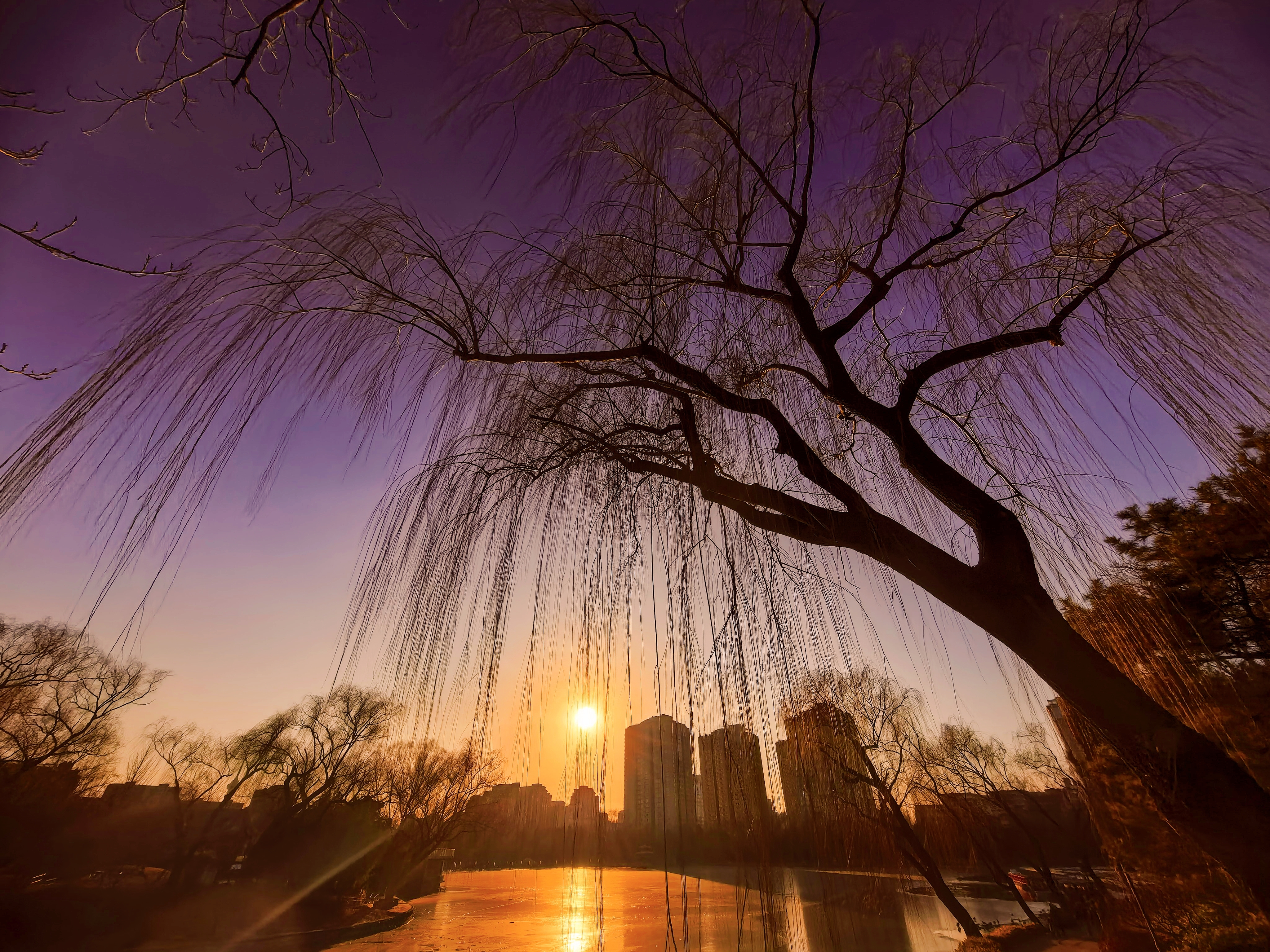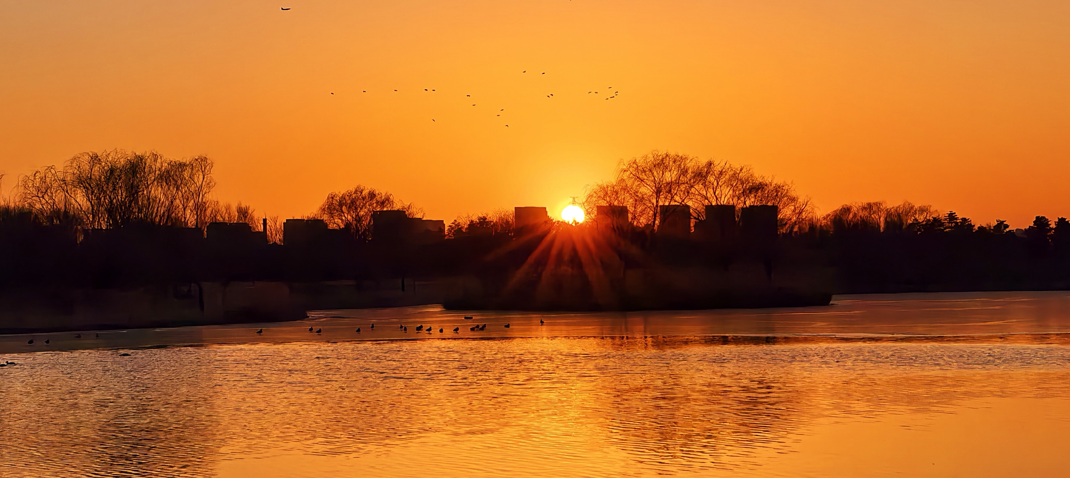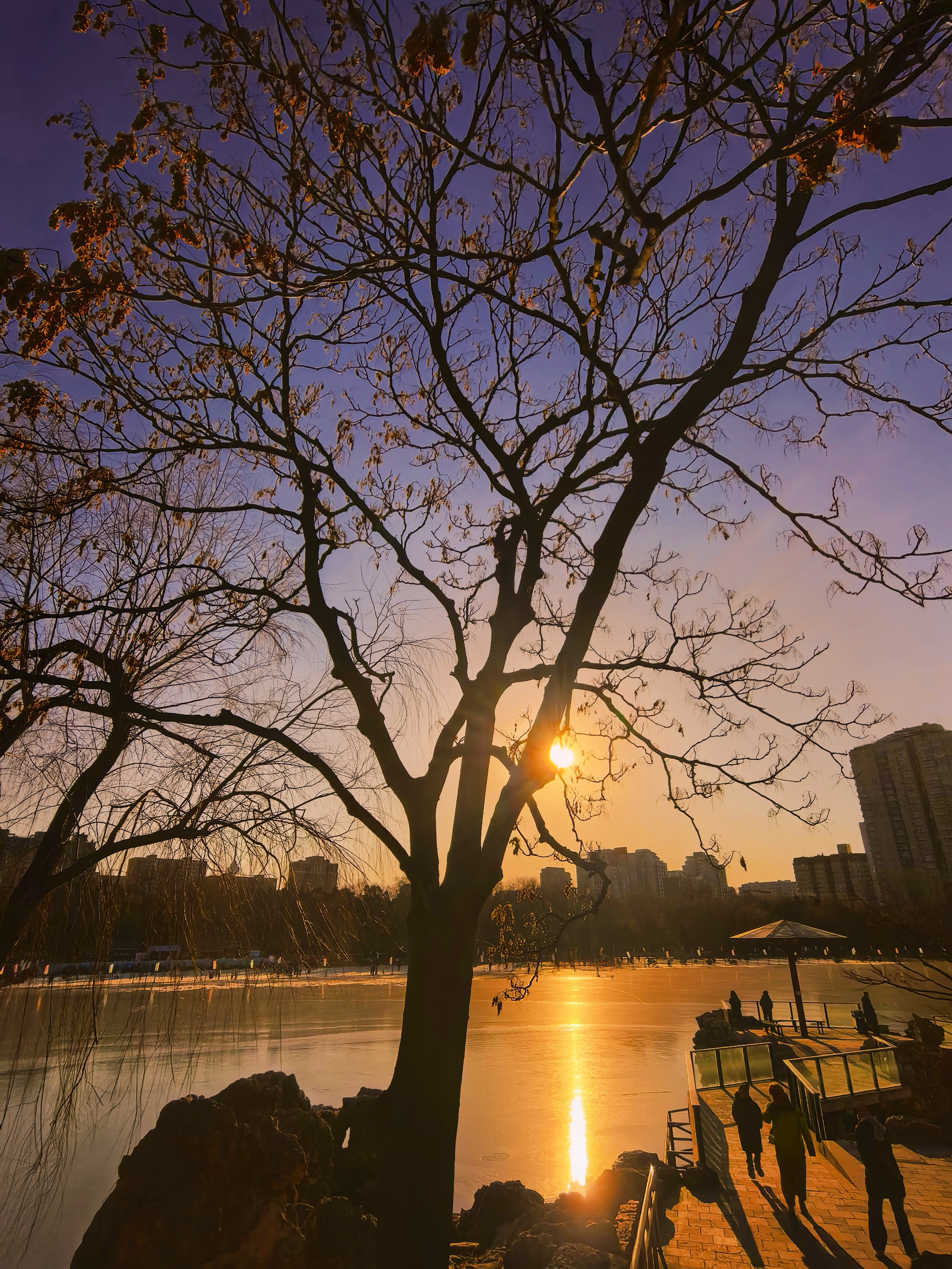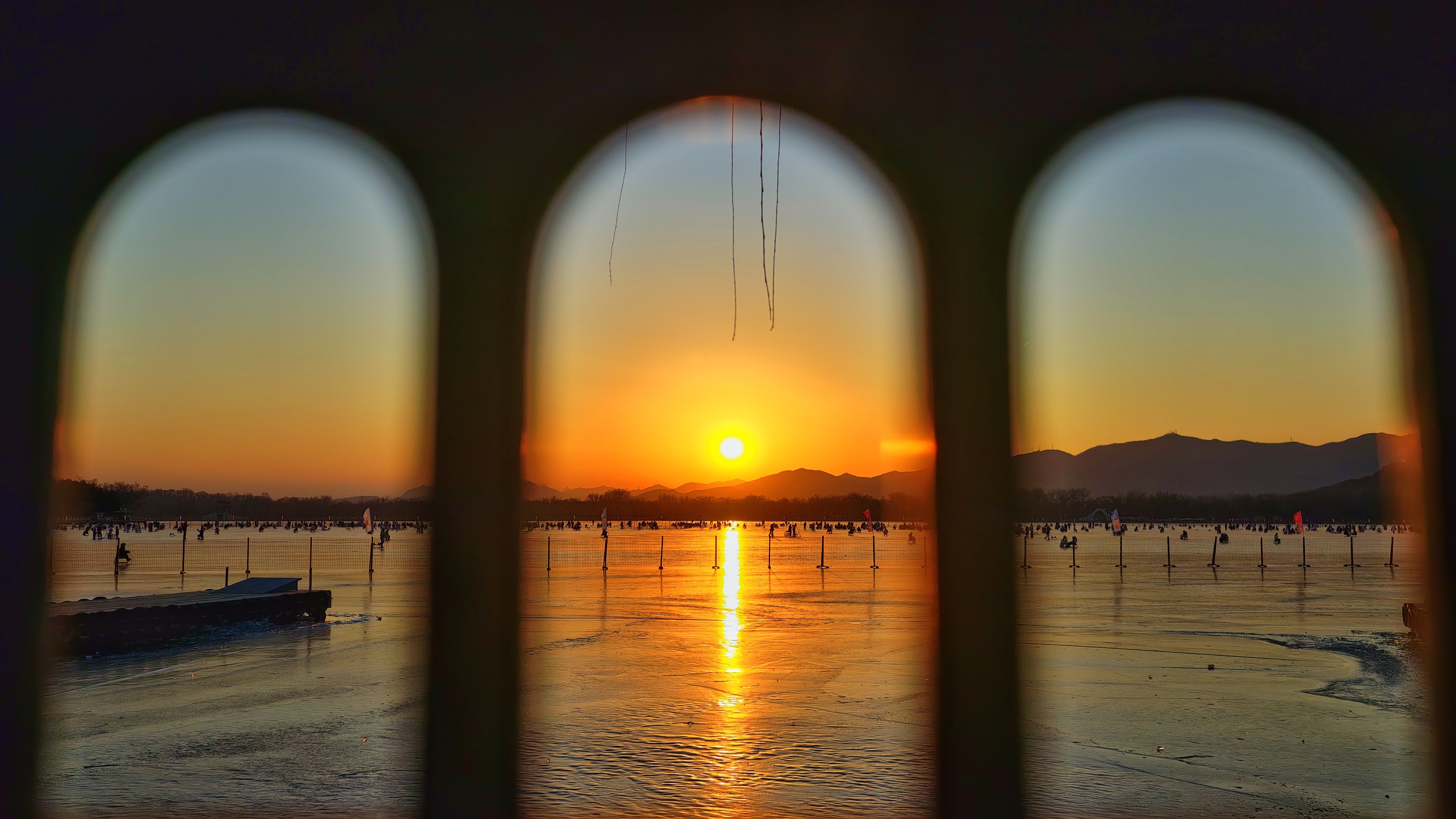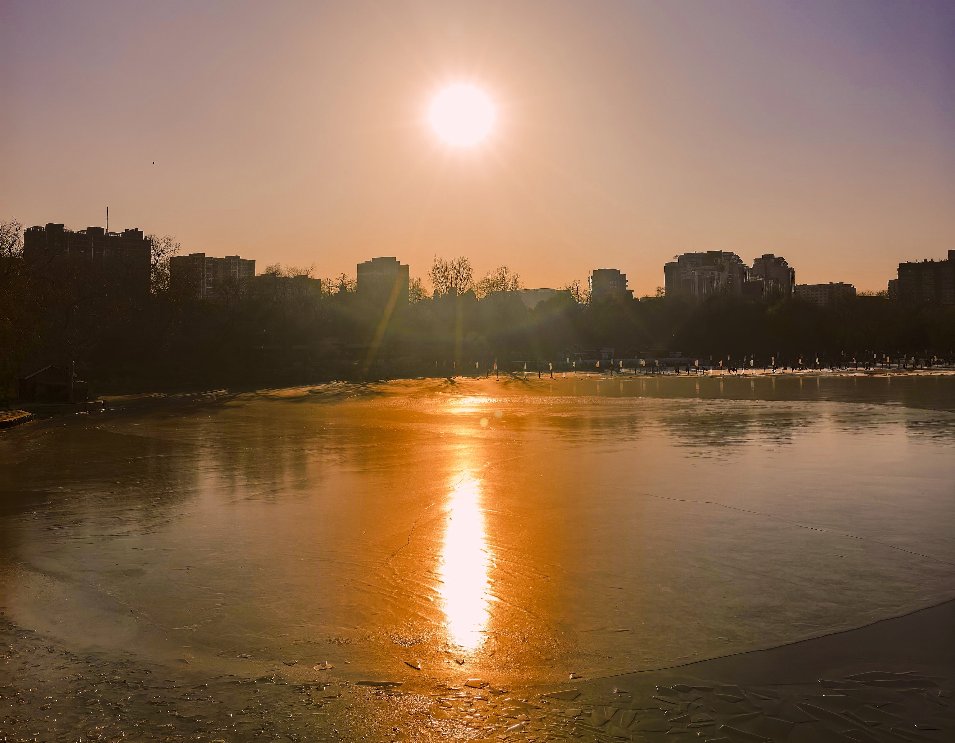 冰欢正酣,岸侧游人踏碎金。