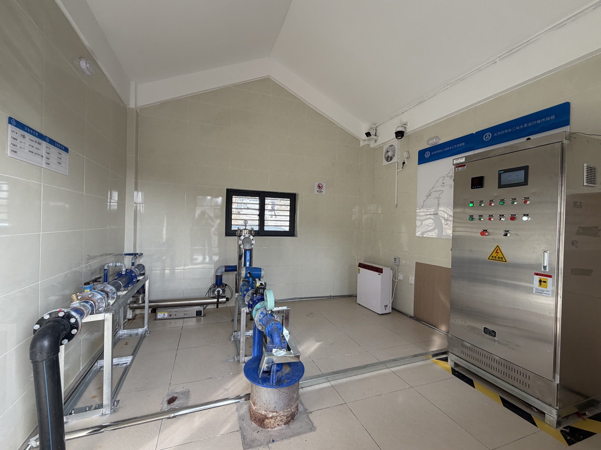 怀柔一渡河村嘉合小镇旁,一座40多平方米的供水站今年刚刚进行了标准化升级,泵房、消毒设备间分别“住”进两个屋子里,日供水能力为200立方米。