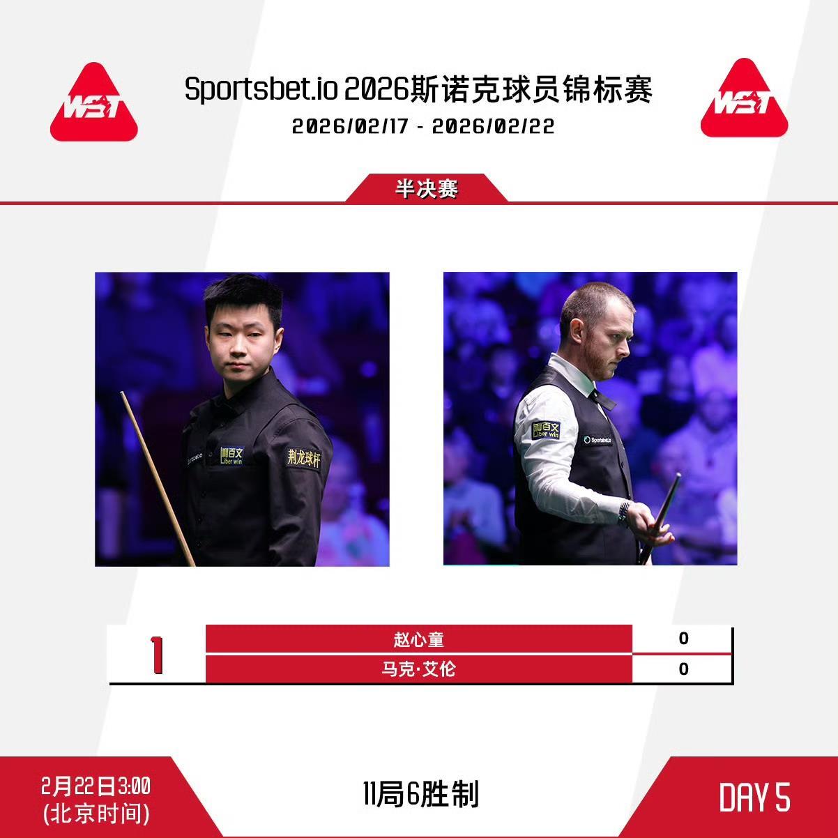 北京时间次日3点,下半区:赵心童 vs 马克·艾伦