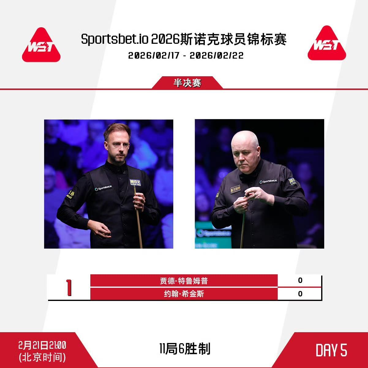 北京时间21点,上半区:约翰·希金斯 vs 贾德·特鲁姆普