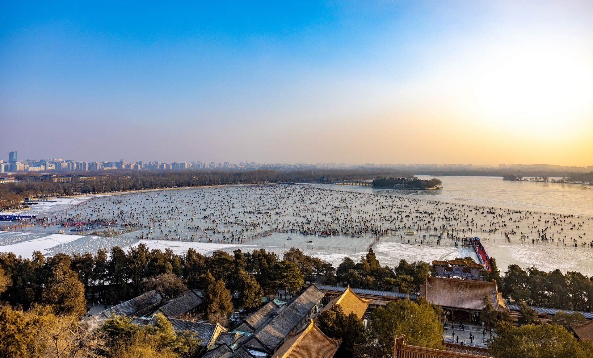 这个周末,市民游客纷纷奔赴冰场,抓住这最后的冬日限定乐趣,其中颐和园昆明湖冰场更是迎来客流高峰,上演了一场热闹非凡的“万人冰嬉”名场面。
