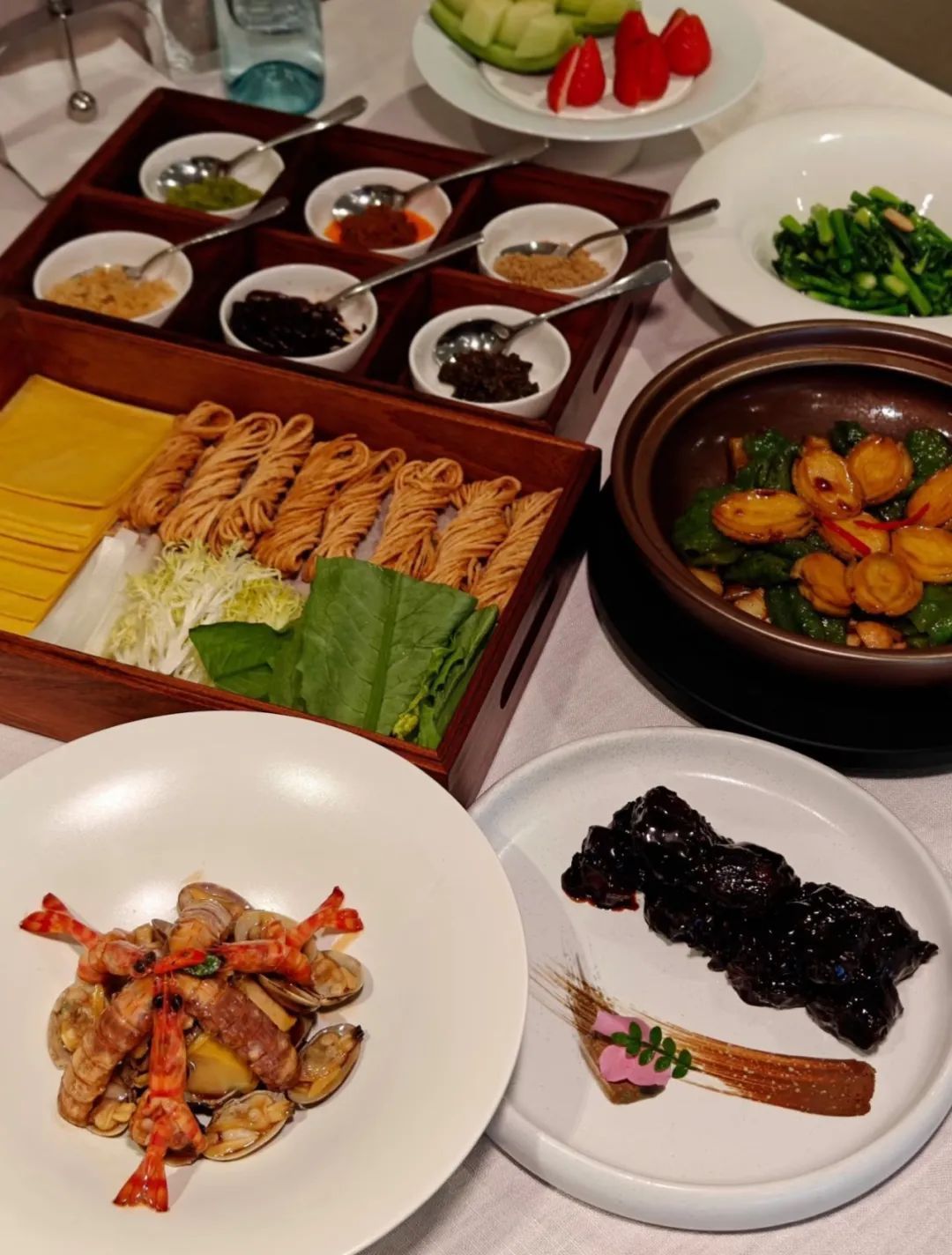 酱焖胶东大海刀、文火煨山东黑牛肉、胶东炝锅面、椒麻海鲜、渤海盐田虾烧白菜、沂蒙六味煎饼、紫海胆炖豆腐、秘制蒸黄鱼、螺蛳辣椒烧鲍鱼、香烤摊羊排、沂蒙跑山鸡