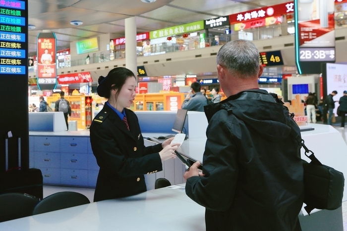 假日期间,济南火车站安排青年志愿者在客流量密集区域解答旅客问询,引导旅客快速进出站。济南西站为老年旅客提供敬老爱心贴服务,将爱心贴贴在老年旅客左上臂等明显位置,便于各岗位工作人员快速识别并主动帮扶。济南东站加强与公交、地铁部门的交通联动,公交动态增加晚班车次,地铁延长运营时间,畅通旅客出行“最后一公里”。
